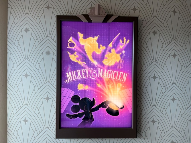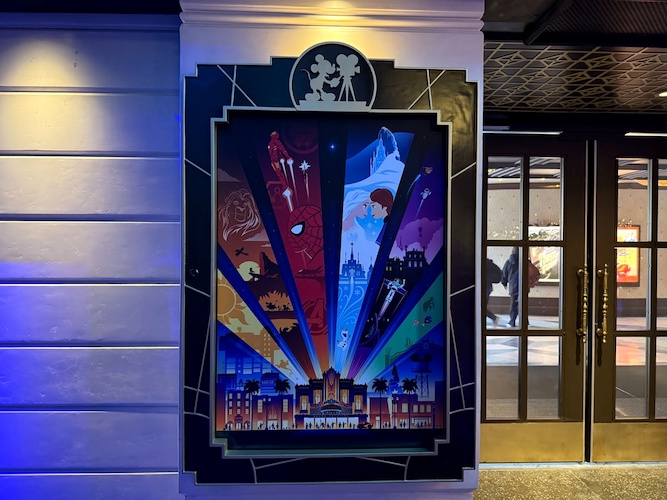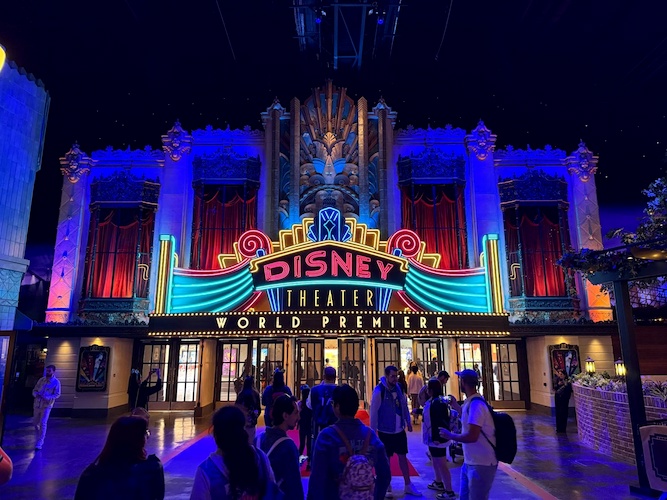 One more hidden detail before we move on. The art deco design around the Disney Theater marquee includes a hidden Sorcerer Mickey hat!