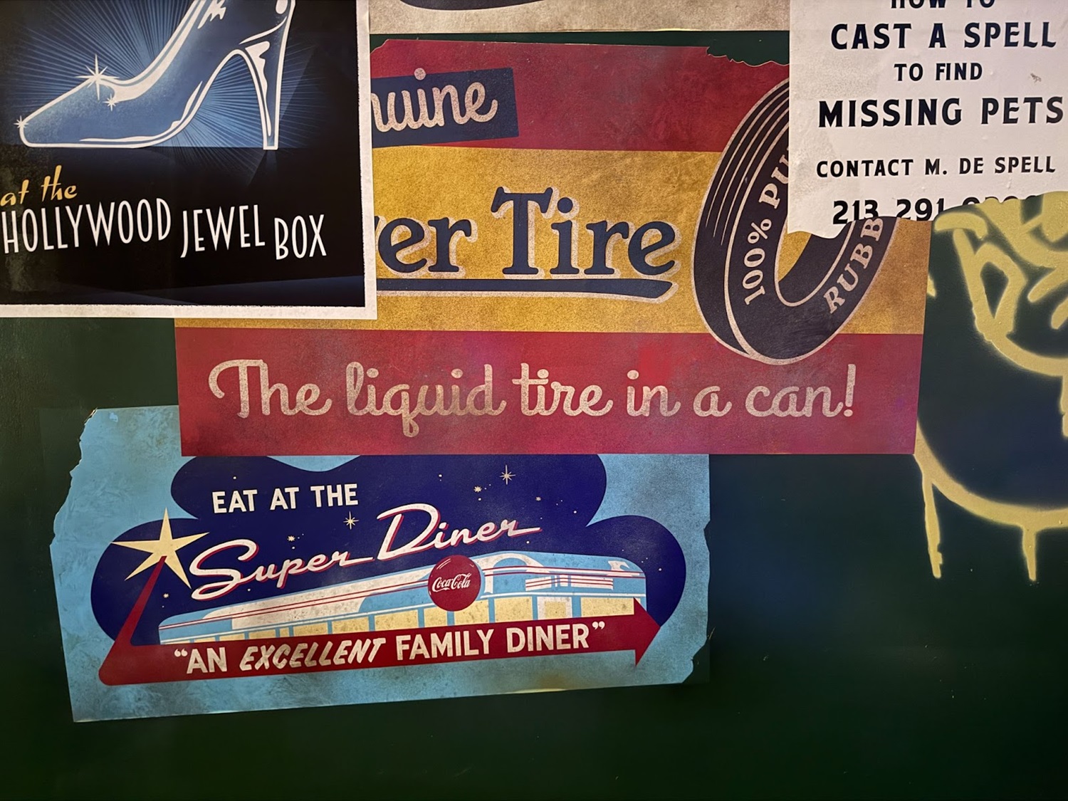 Anyone who's ever been to Hollywood knows it’s not as glamorous as the movies would have you believe. This alley space is littered with graffiti and ads, and here, we find another bounty of references.