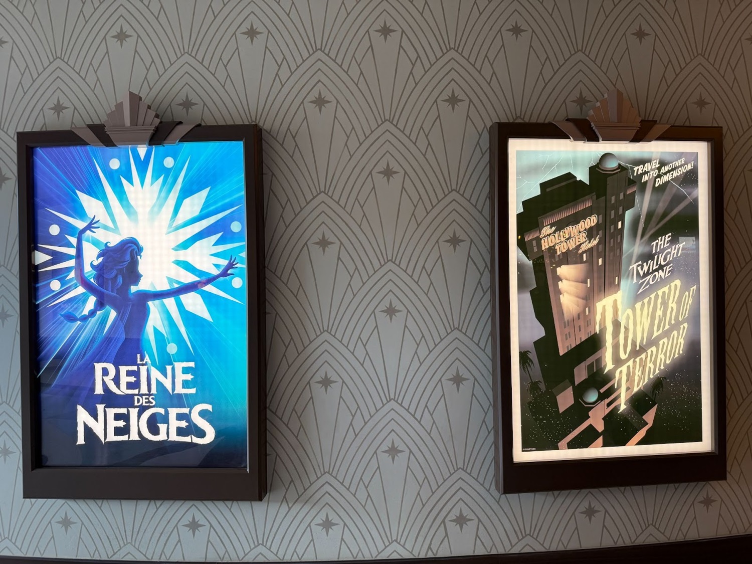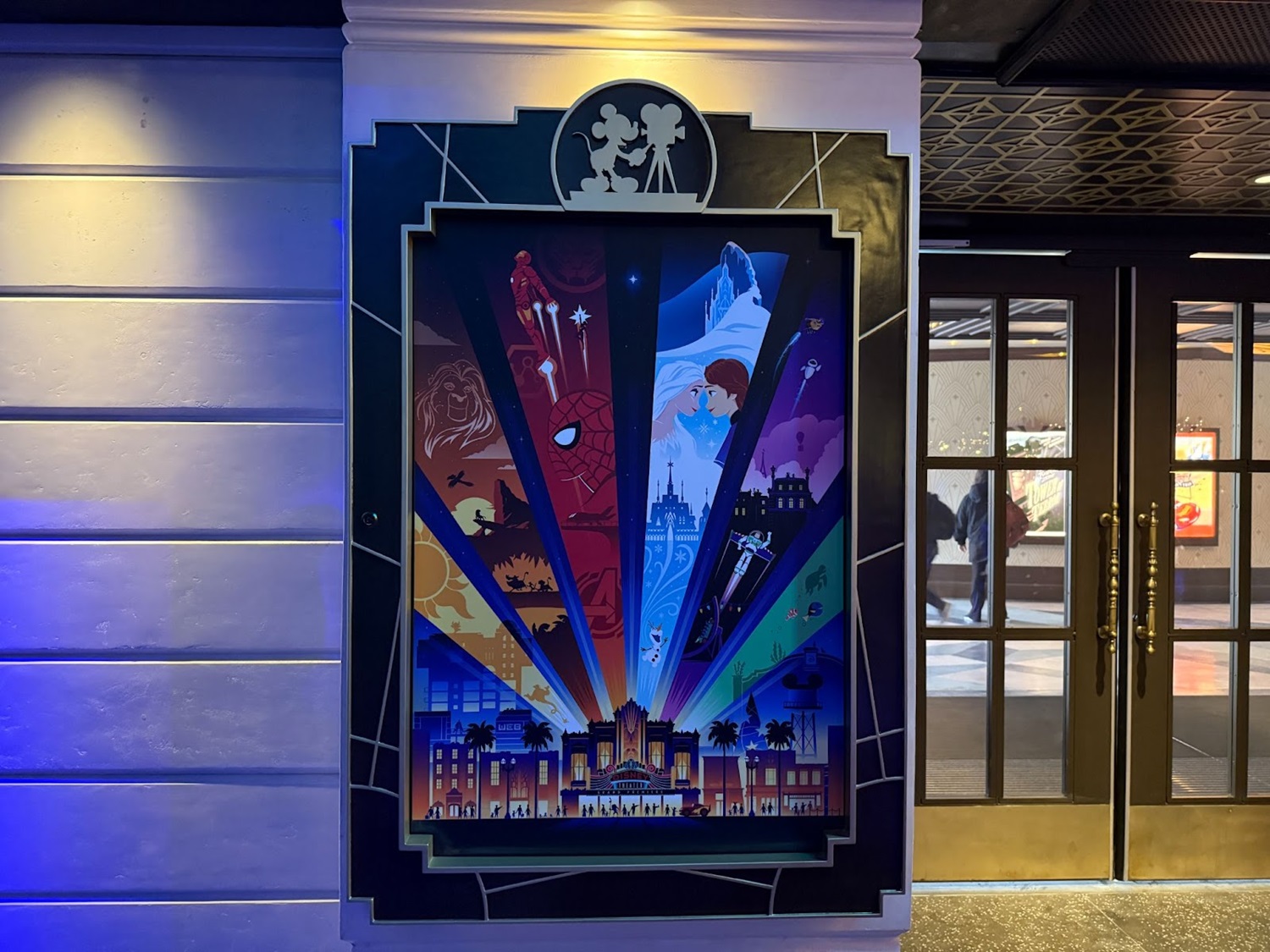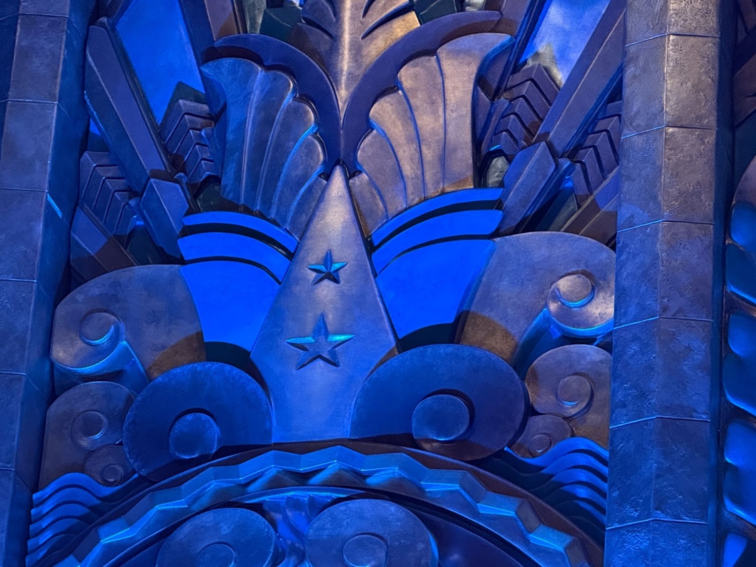 One more hidden detail before we move on. The art deco design around the Disney Theater marquee includes a hidden Sorcerer Mickey hat!