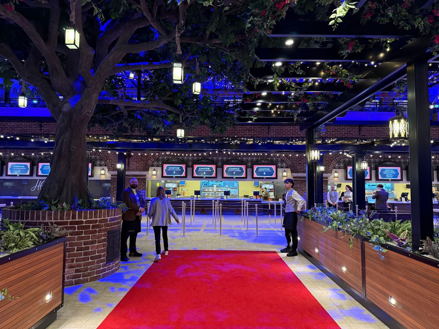 Hungry? You can grab a bite to eat at The Hollywood Gardens, an indoor quick-service restaurant designed to look like you’re outdoors.