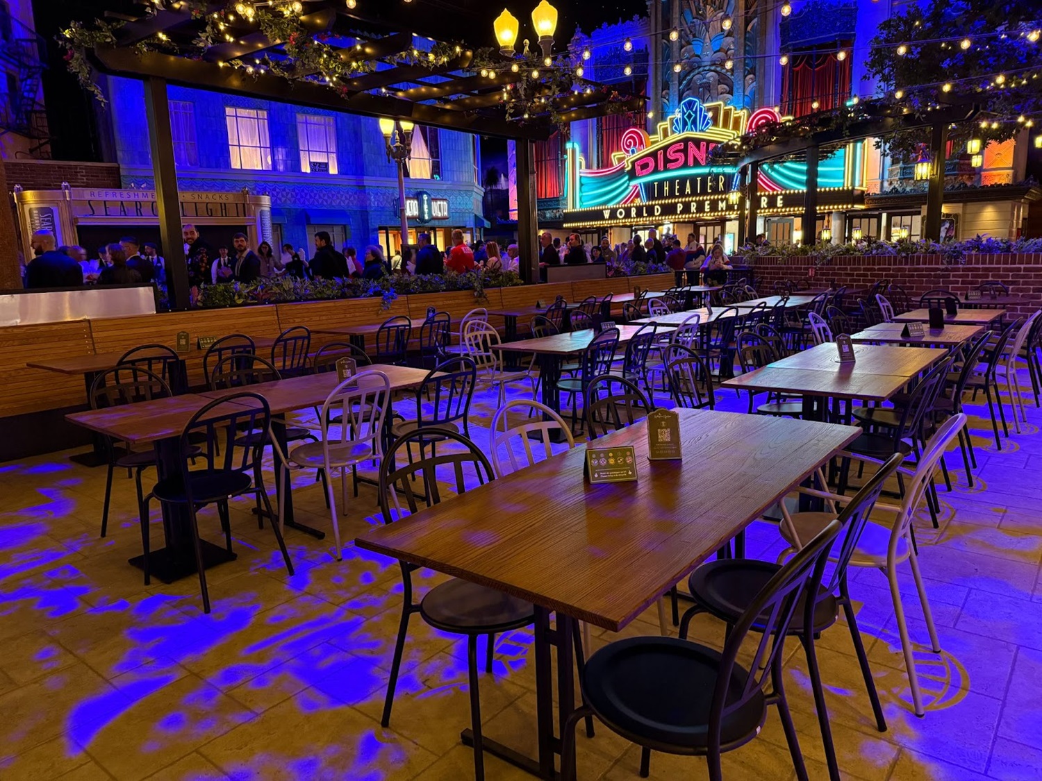 Why is this new entrance experience called World Premiere? Because the Disney Theater is hosting you for the world premiere of all the movies you can live through in the park. But there’s so much to explore right here under the starry nighttime sky.