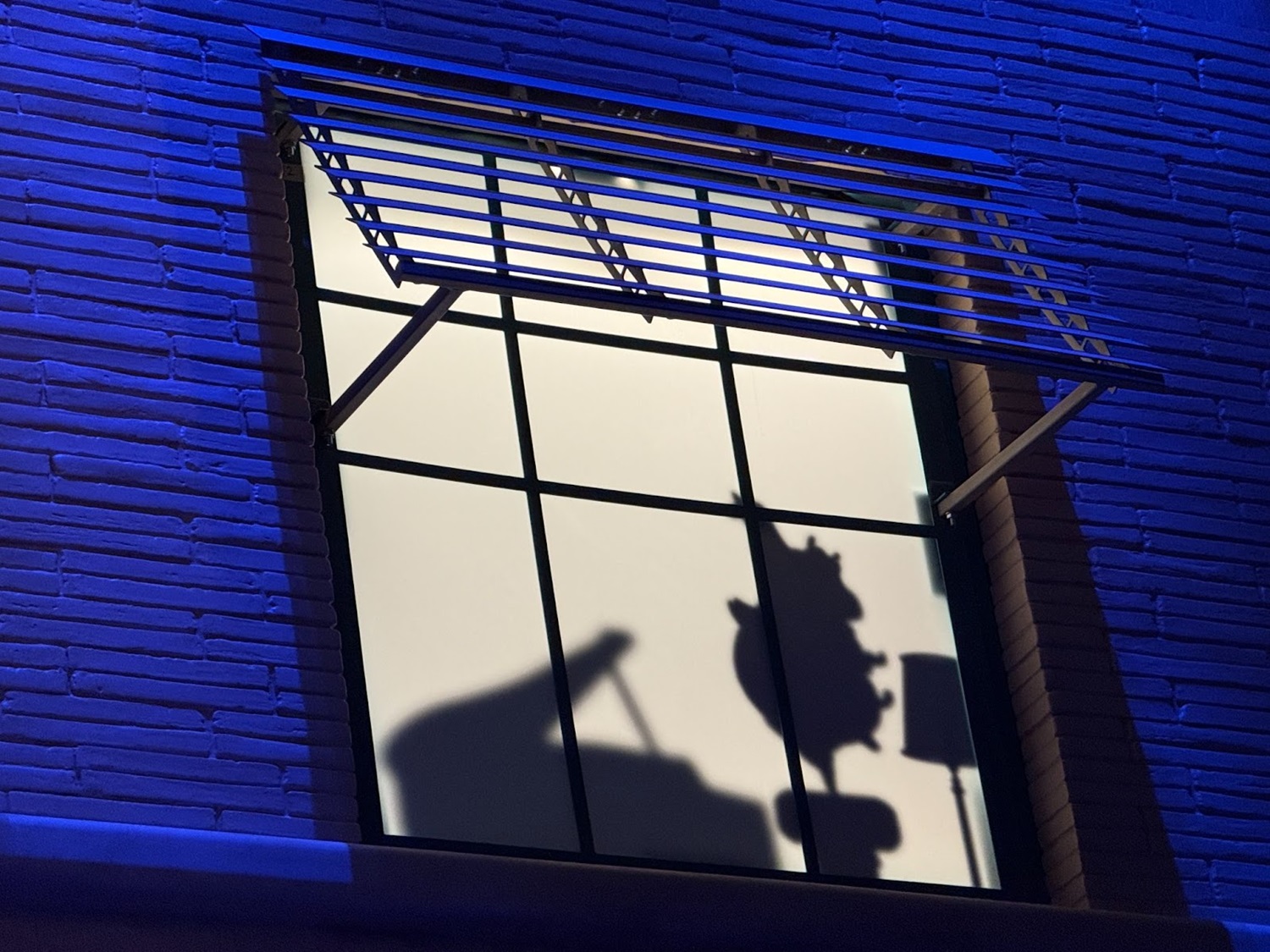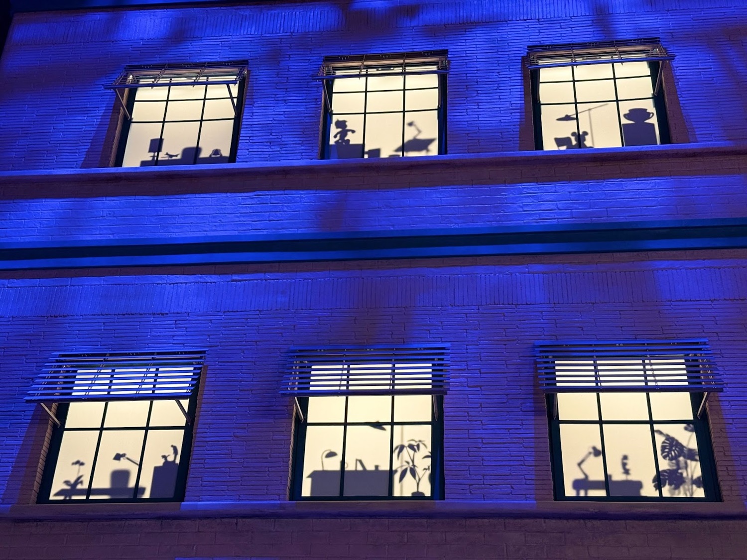 Pay close attention to the windows for some hidden surprises. Animation buffs will note the silhouettes of Kem Weber’s furniture, including an airline chair and animation desks.