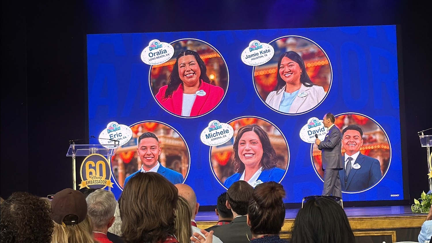 Disneyland Resort President Thomas Mazloum, along with the current Ambassador Team took to the stage of the Fantasyland Theater this morning to announce the two new Ambassadors that will serve beginning January 1st, 2026 through the end of 2027.
