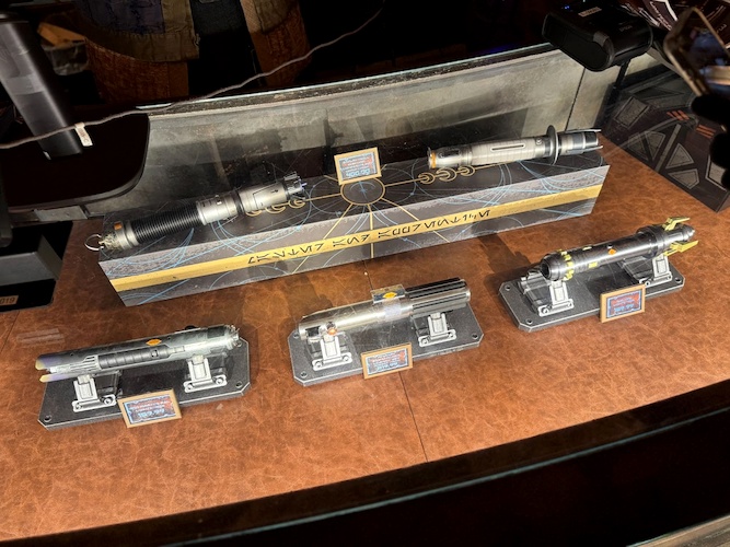 Alongside the figurines were a large selection of special lightsaber hilts for purchase.
