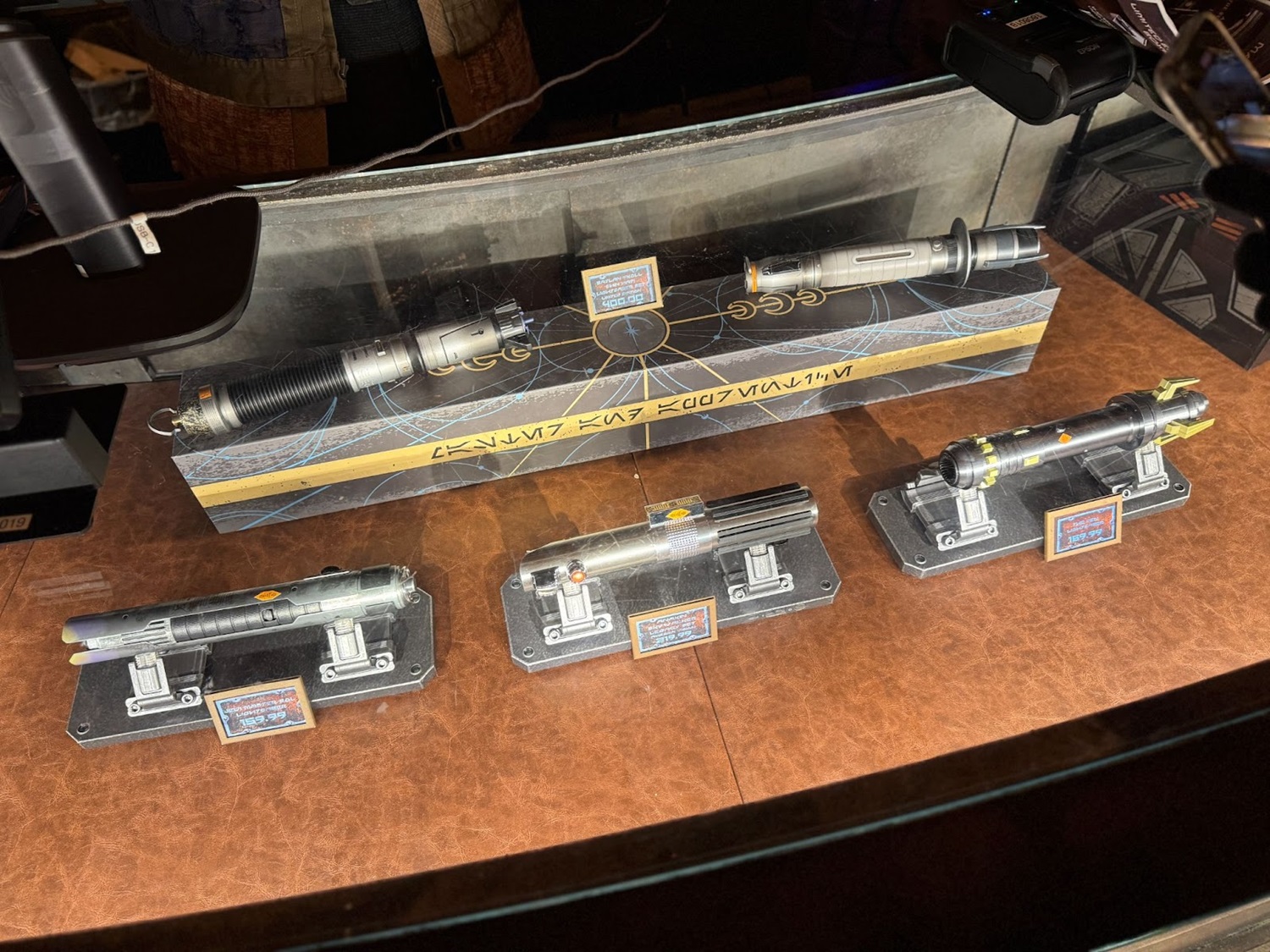 Alongside the figurines were a large selection of special lightsaber hilts for purchase.