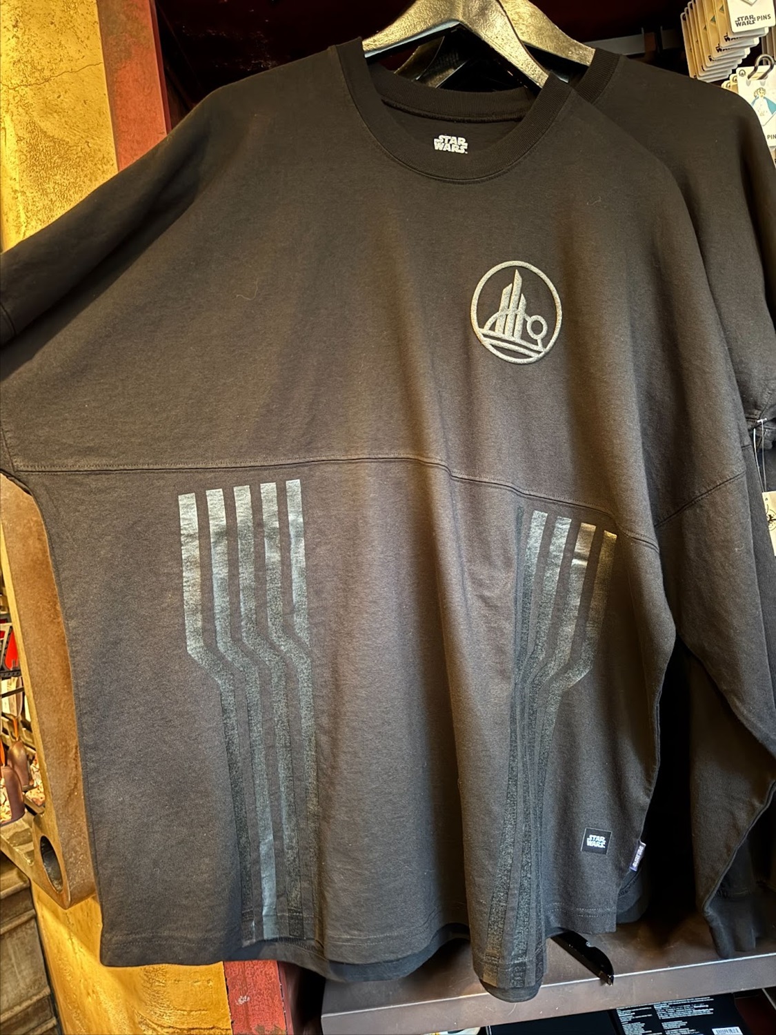 For those superfans of Batuu itself, a new all-black Black Spire Outpost Spirit Jersey has been made available as well for $79.99.