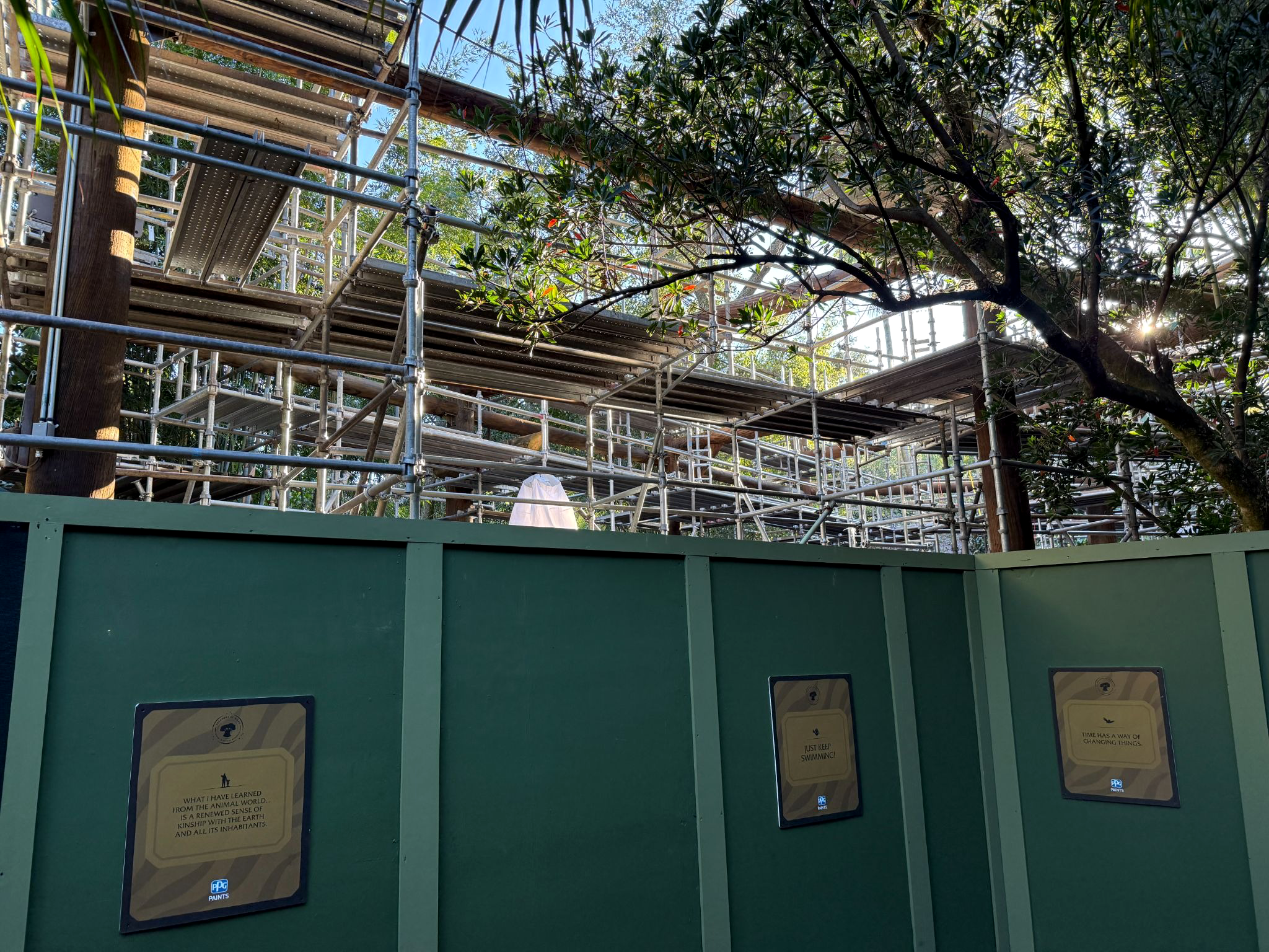 - Located in the Africa area of the park, the jungle-gym style area is covered in scaffolding, with the area completely blocked off from guest access by construction walls.