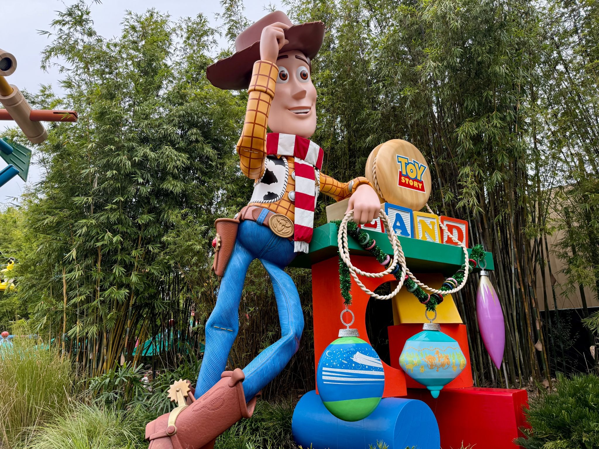 Toy Story Land is also decked out for the season, bringing appropriately oversized decorations to Andy’s backyard.