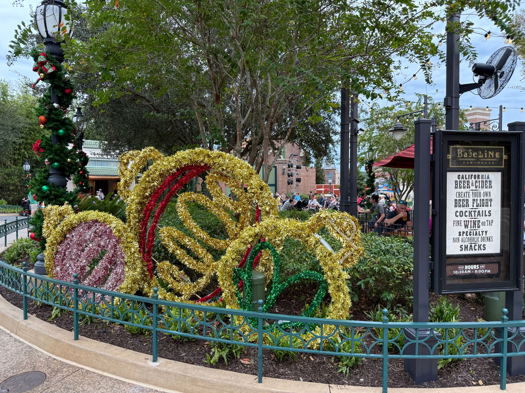 As soon as guests approach Disney's Hollywood Studios, they'll be greeted by vintage Christmas music and equally as vintage decorations, evoking a Christmas of the 1920s and 30s.