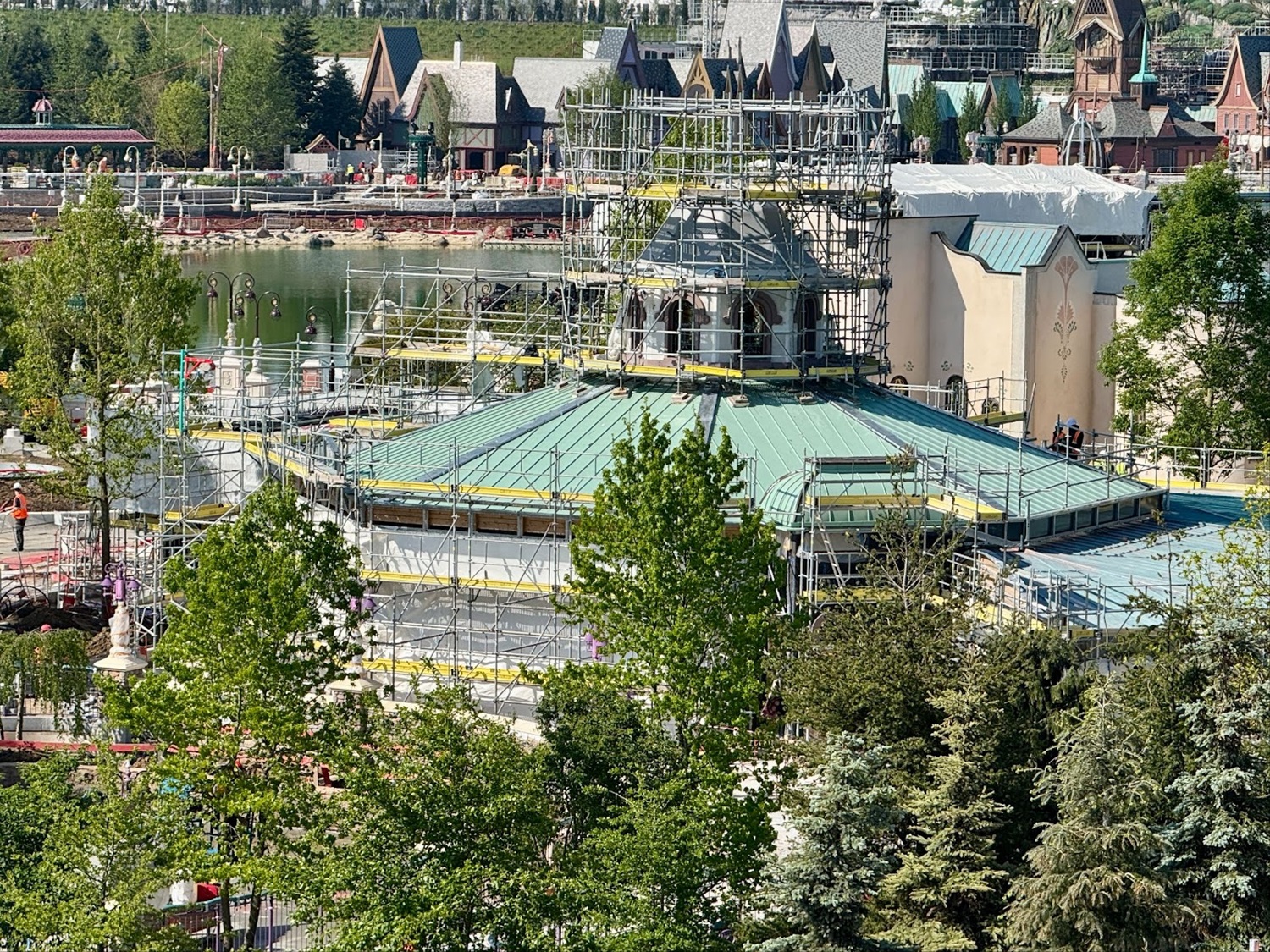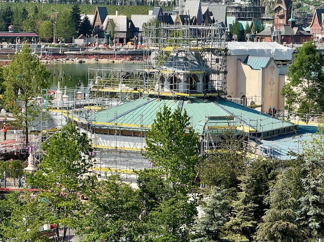 - The upcoming attraction’s ornate roof is also coming together, getting finishing touches and details.