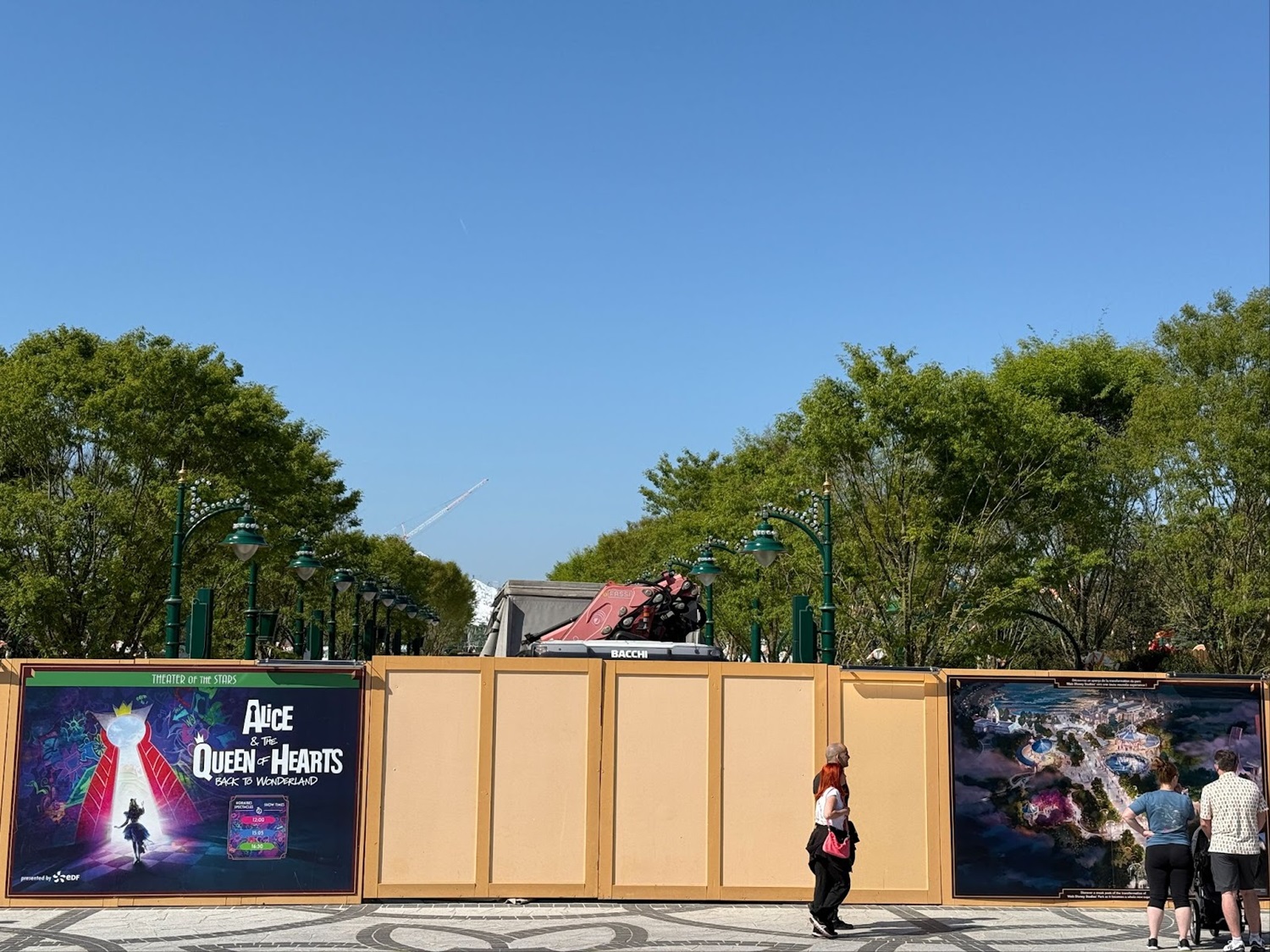- From the construction fence, guests can now see the beautiful light fixtures that will line the new central pathway.
