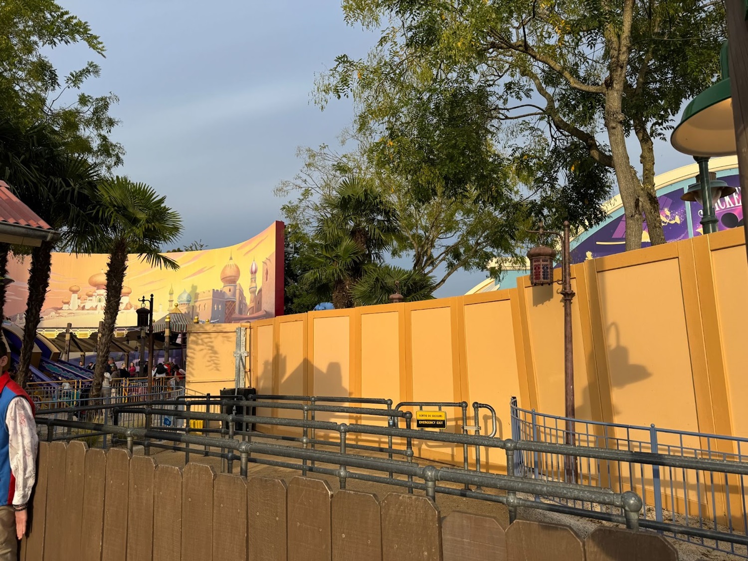 Construction walls around the soon-to-be Adventure Way area of the park show concept artwork for a new Tangled-themed attraction called Raiponce Tangled Spin. We can also see concept artwork for The Regal View Restaurant and Lounge, also coming to Adventure Way.