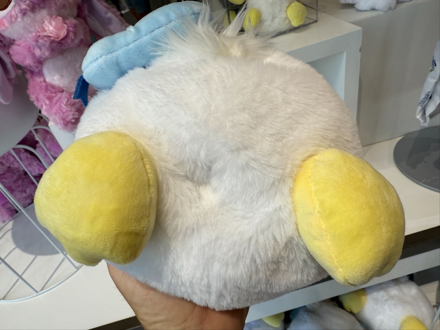 - The two new products, both themed to Donald’s feathery derriere, are incredibly adorable and perfectly plush.