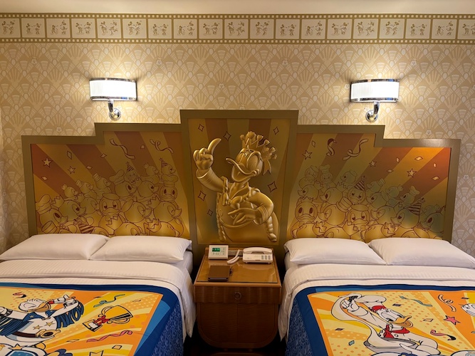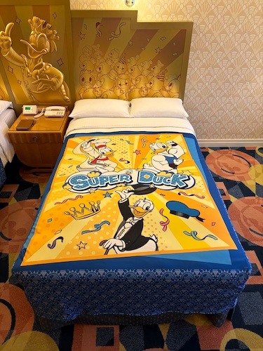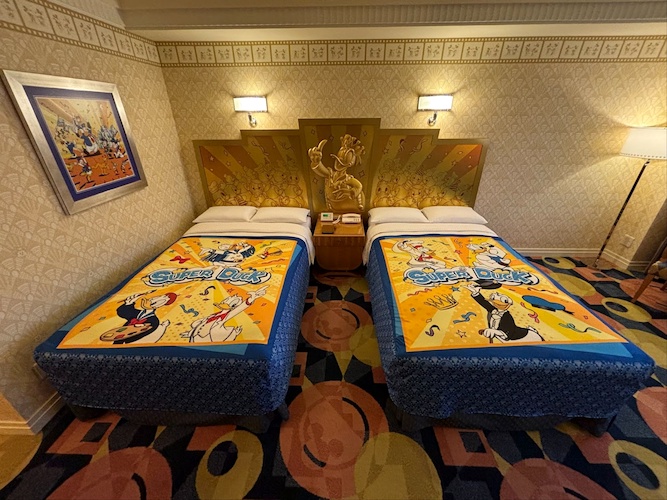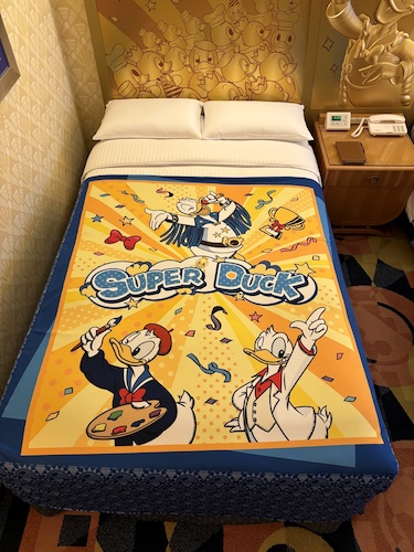 These rooms have been given a Donald Duck upgrade, featuring a headboard and bed spread celebrating the number one duck.