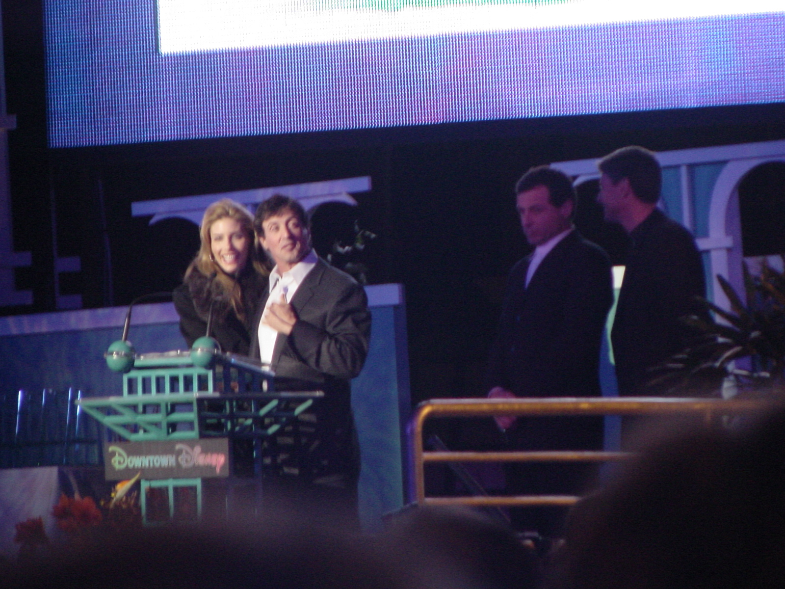 On the night of January 11th, Downtown Disney at the Disneyland Resort was officially opened with a charity event for the Elizabeth Glaser Pediatric AIDS Foundation. The event started with a Red Carpet for a few celebrities. Following that was the opening ceremony featuring speeches by Paul Pressler (Chairman of Walt Disney Parks and Resorts) Robert Iger (President and Chief Operating Officer of the Walt Disney Company), Sylvester Stallone and his wife Jennifer Flavin Stallone, Paul Glaser (actor and widower of Elizabeth Glaser) and Michael Eisner (Chief Executive Officer of the Walt Disney Company).