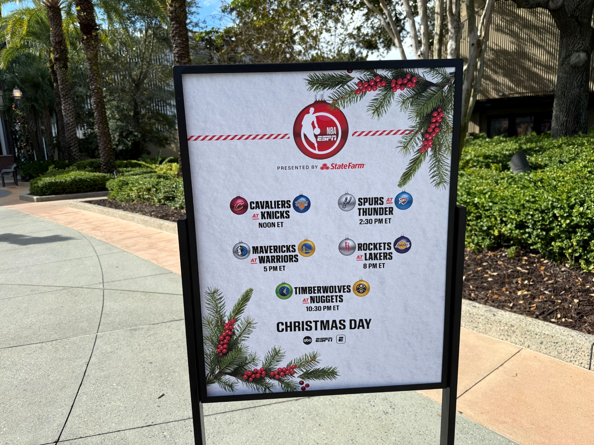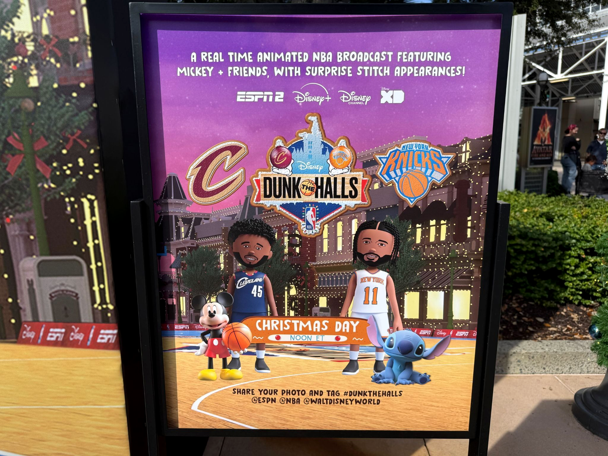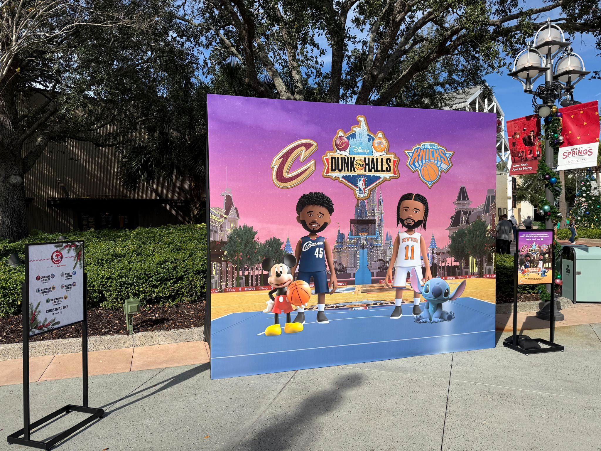 Guests visiting Disney Springs at Walt Disney World can get ready for a new annual tradition with a special new photo op. Celebrating the upcoming Dunk The Halls on Disney+, ESPN2, and more. The new photo spot also features some of the players that will be featured in the holiday game, which features the Cleveland Cavaliers taking on the New York Knicks.