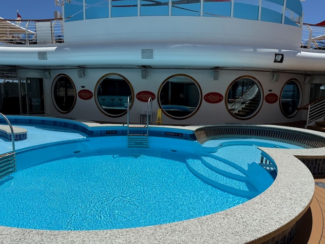 Heading out onto the deck, you’ll find even more decor in and around all the pools, slides and activities.