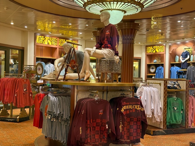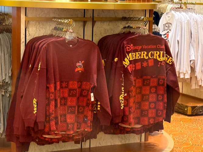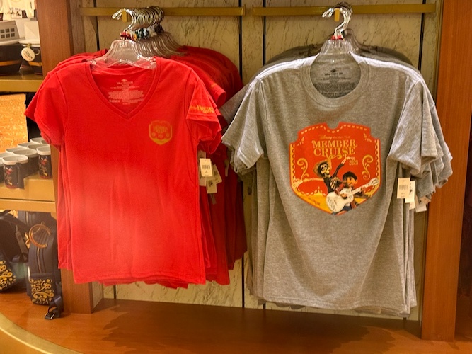 Much of the same design motif carries over into the merchandise for the Member Cruise. As the ship has yet to set sail as of publication, we can only get a glimpse from outside the shop. You’ll find a special Spirit Jersey and a couple of different shirts.