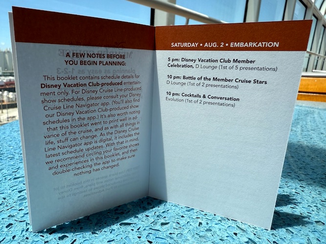Guests also receive a copy of the DVC Member Cruise Insider magazine, which gives more information on all the fun that awaits during their voyage.