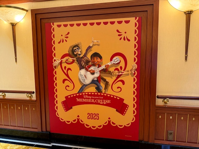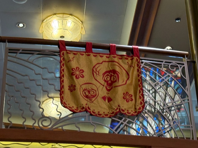 We’ll begin by looking at some of the special decor throughout the Disney Dream – much of which features characters from Pixar’s Coco.