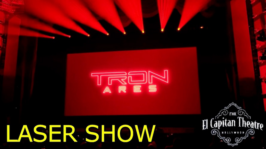 - As part of the fun, just ahead of the screening of TRON: Ares at the historic El Capitan Theatre in Los Angeles, a laser show took place featuring music and iconography from each of the films.