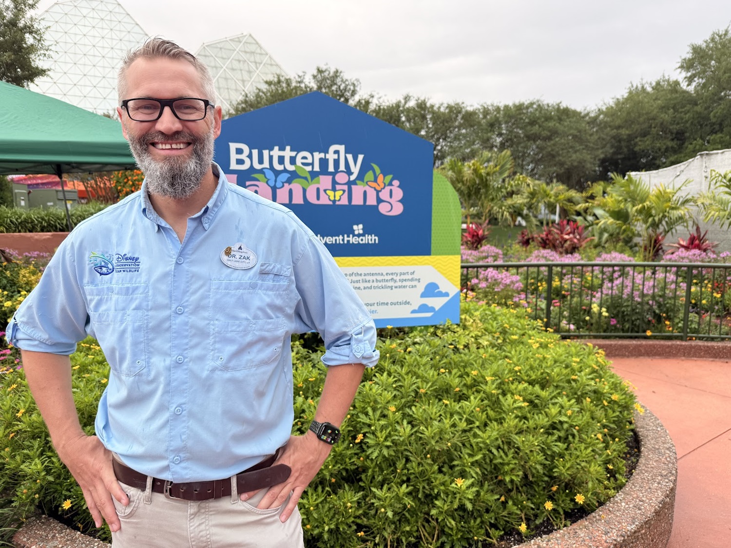 Disney Conservation Director Dr. Zak is the Program Lead for the Association of Zoos and Aquariums (AZA) Saving Animals From Extinction (SAFE) Program for the monarch butterfly, which has been adopted by over 100 other AZA-accredited facilities nationwide. The SAFE program for monarch butterflies seeks to recover and sustain monarch populations by fostering healthy breeding and migratory environments and providing them with safe places to be dormant for the winter.