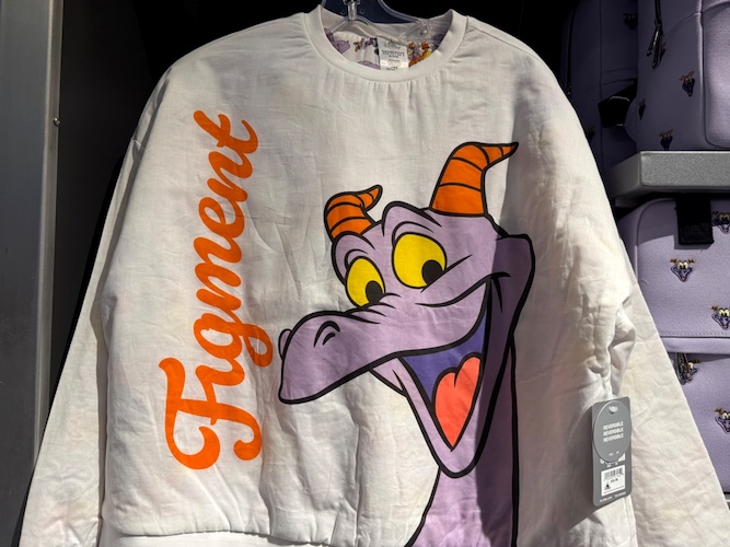 On this long-sleeve, a smiling Figment adorns the front alongside his name. Then, in a fun touch, you can see both the back of his head and the back of the letters of his name on the back of the shirt. Retails for $59.99.