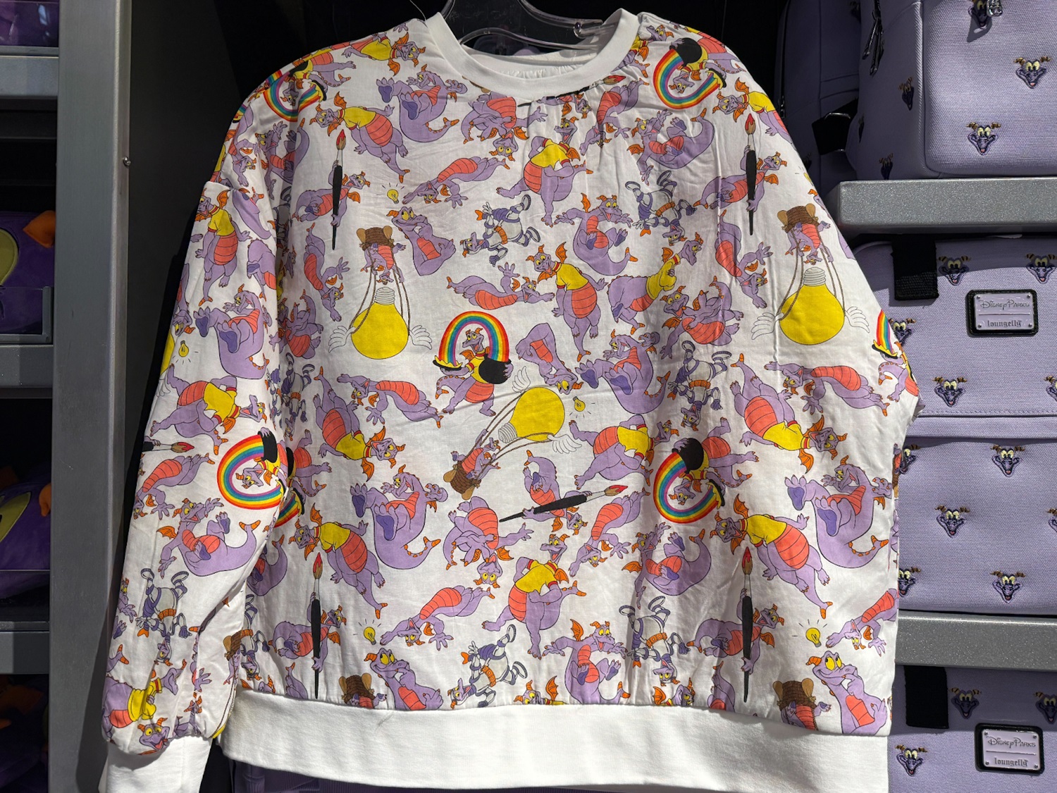 On this long-sleeve, a smiling Figment adorns the front alongside his name. Then, in a fun touch, you can see both the back of his head and the back of the letters of his name on the back of the shirt. Retails for $59.99.