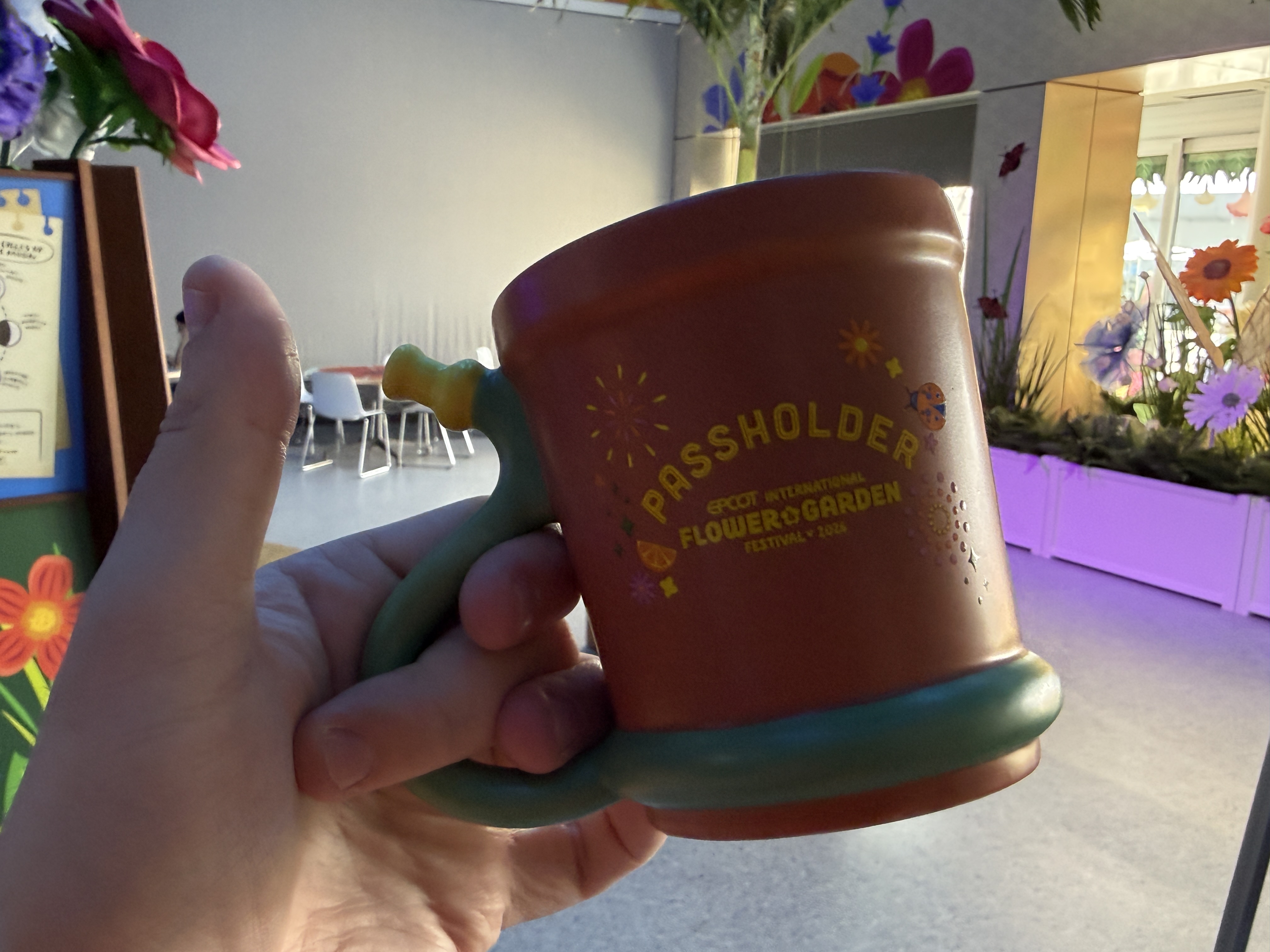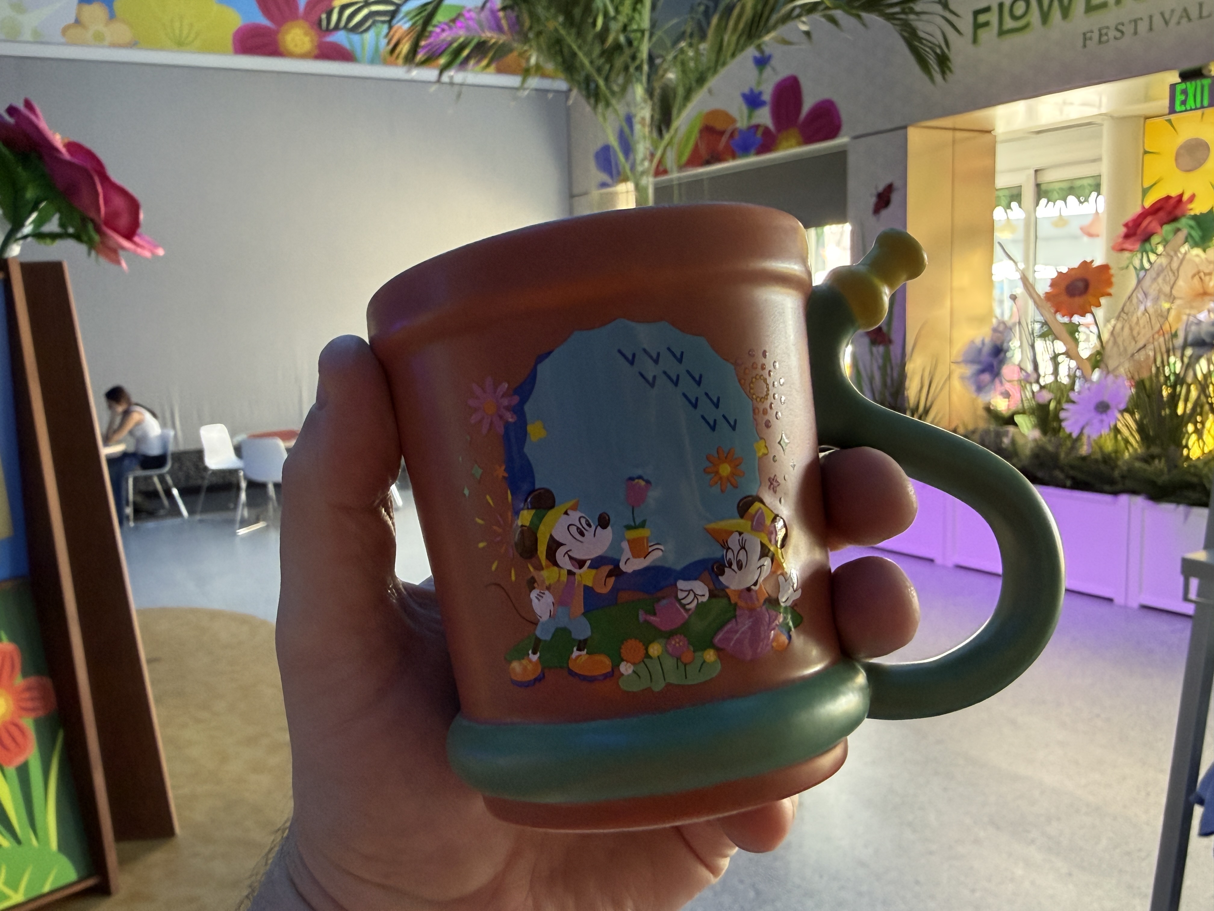 Just for Annual Passholders, a mug designed to look like a flower pot for $24.99 can be brought home, this one featuring Mickey, Minnie, and Spaceship Earth while commemorating the festival.