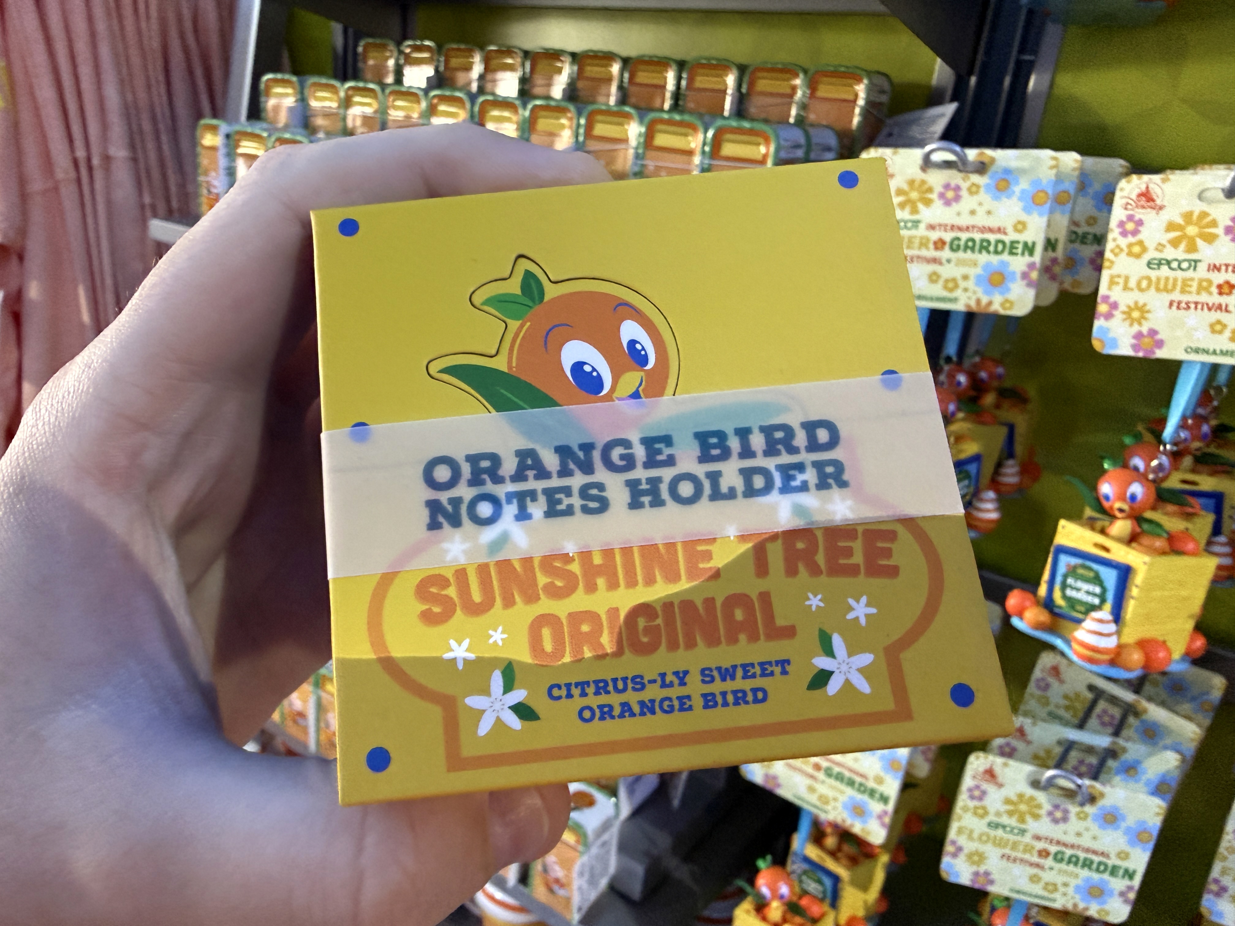 A sculpted mug takes on the EPCOT International Flower & Garden Festival with a Dole Whip-esque look, and can be picked up for $24.99. Orange Bird also is featured on a notes holder that looks like an Orange crate for $16.99. That same look carries over to a fun photo frame as well for $16.99