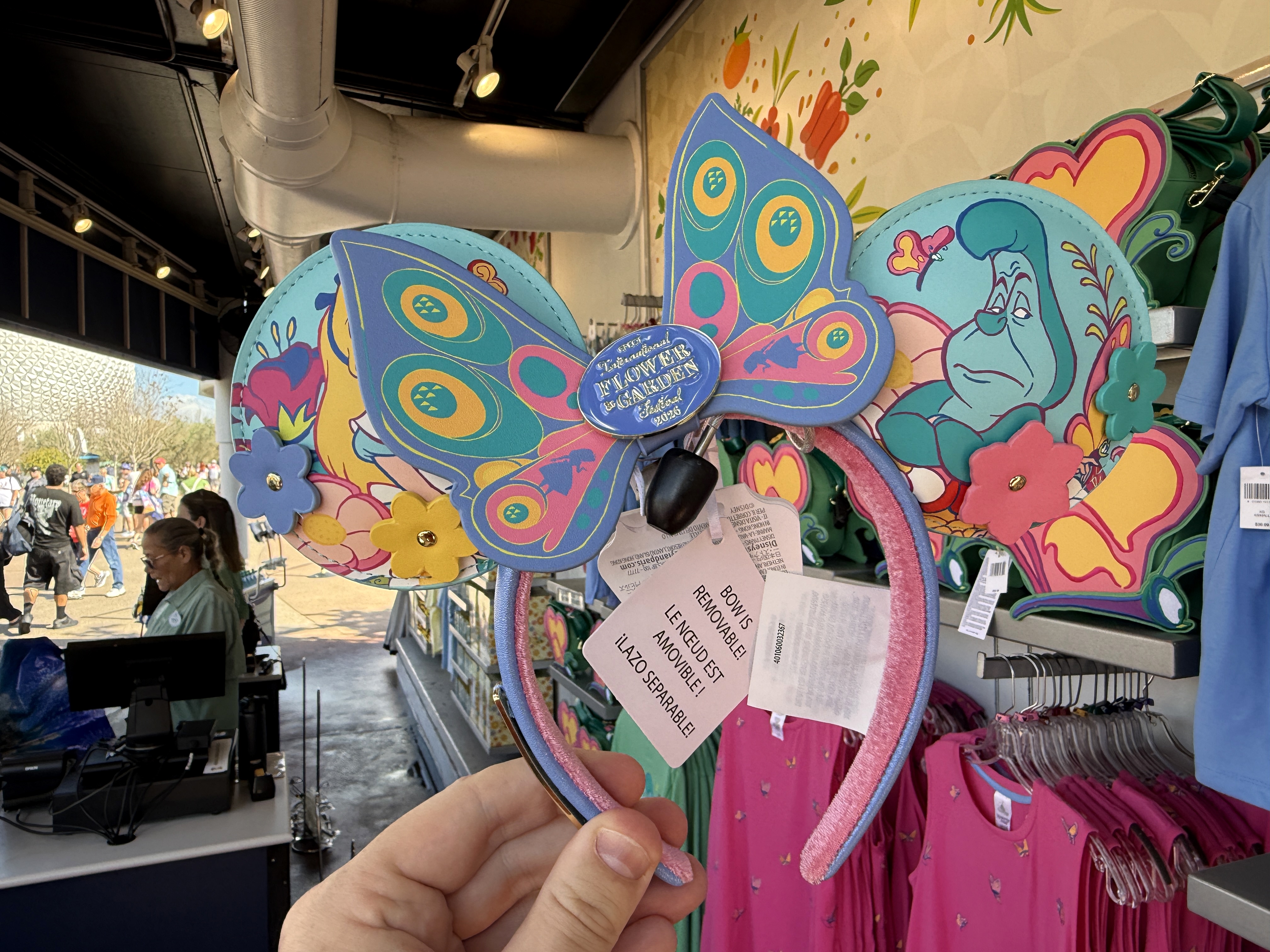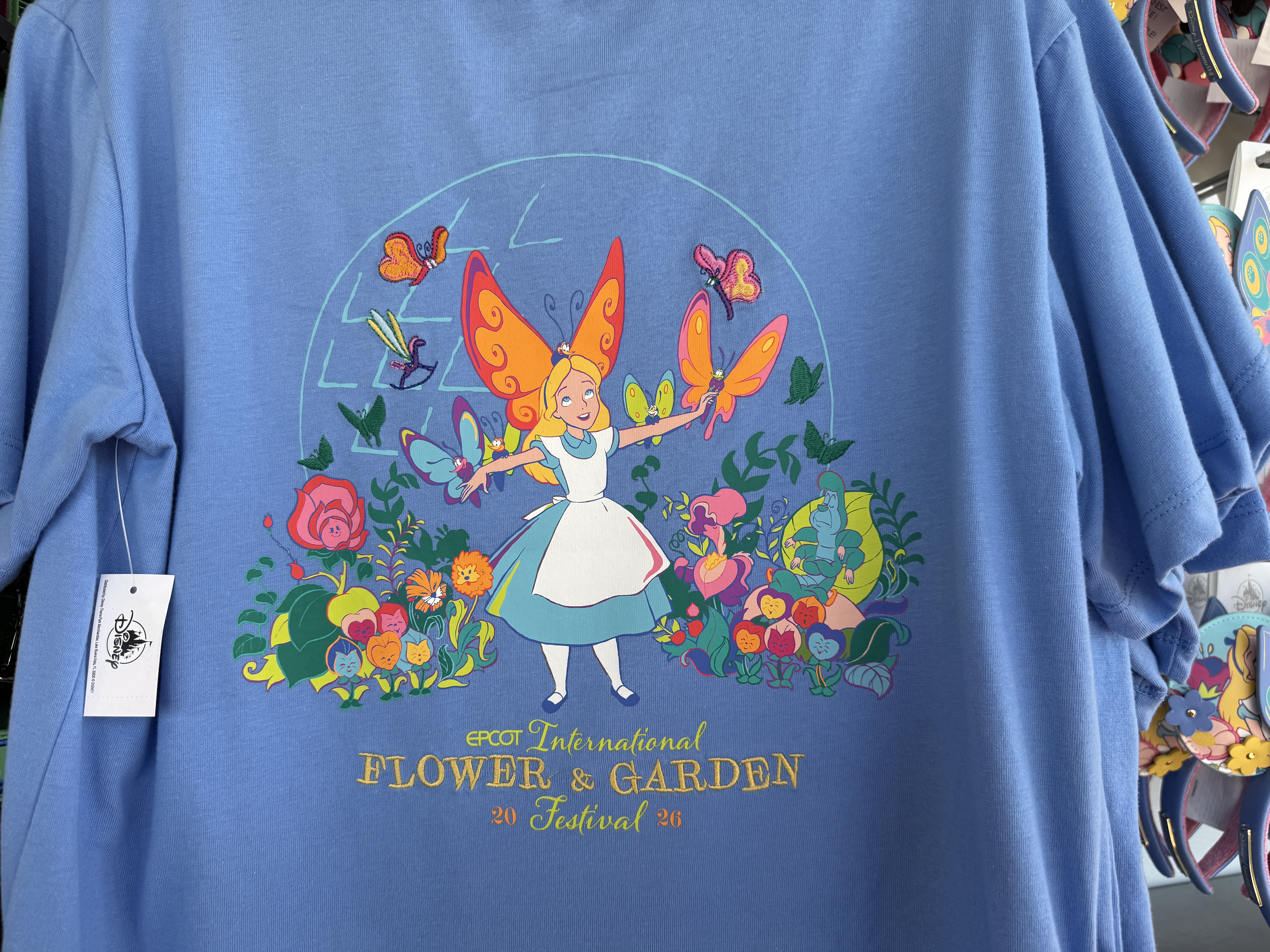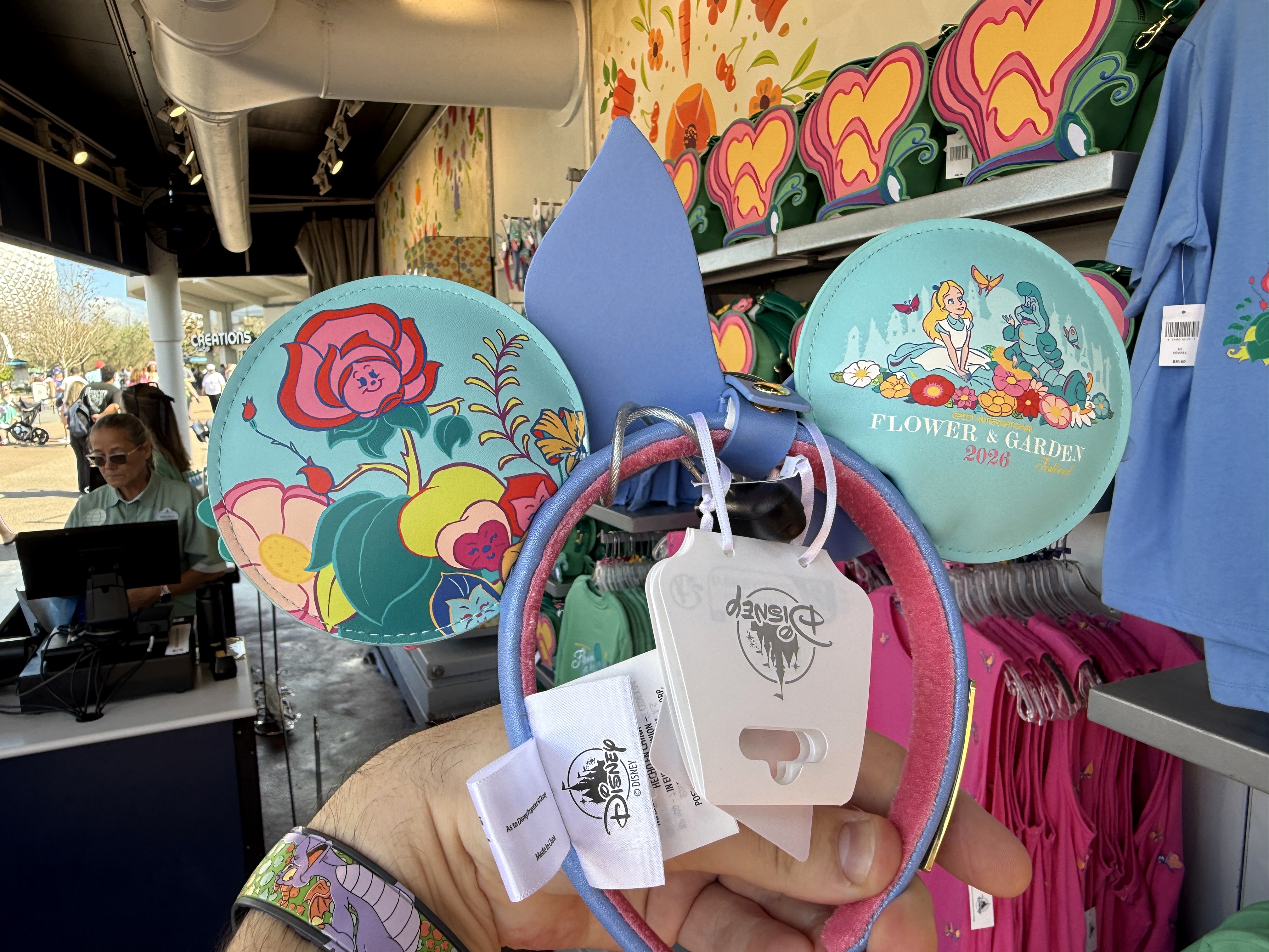 Alice of Alice In Wonderland and some of her garden friends (appropriately enough) take center stage on a new set of ears that are available that also feature the International Flower and Garden Festival moniker.