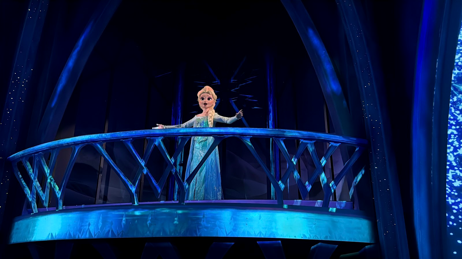 The faces of the human characters have been switched out to the fully sculpted and animated faces on the similar Frozen-based attractions in Hong Kong, and soon to open in Paris. Yes, Tokyo DisneySea also has a Frozen-themed boat ride, but it is unique to that park and not like those at EPCOT, Hong Kong Disneyland, and soon to be at Disney Adventure World, though it too has fully sculpted figures.