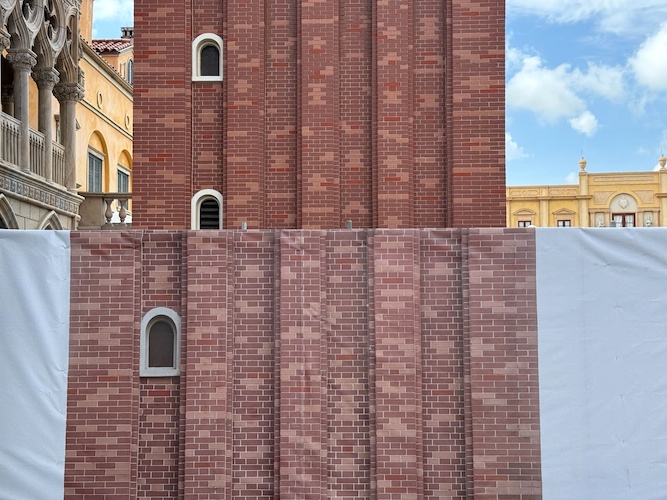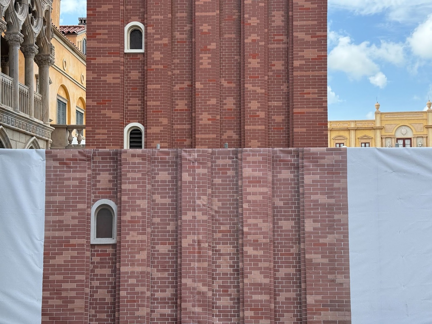 Walt Disney World’s tribute to Venice’s iconic bell tower will soon return to its full glory after months of careful facade maintenance.