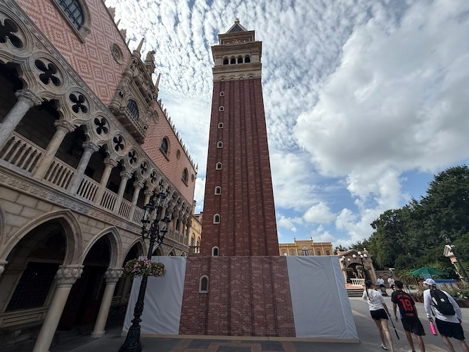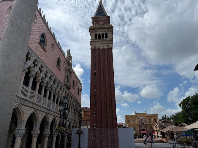Scaffolding Almost Down at EPCOT’s Italy Pavilion as St. Mark’s Campanile Restoration Nears Completion