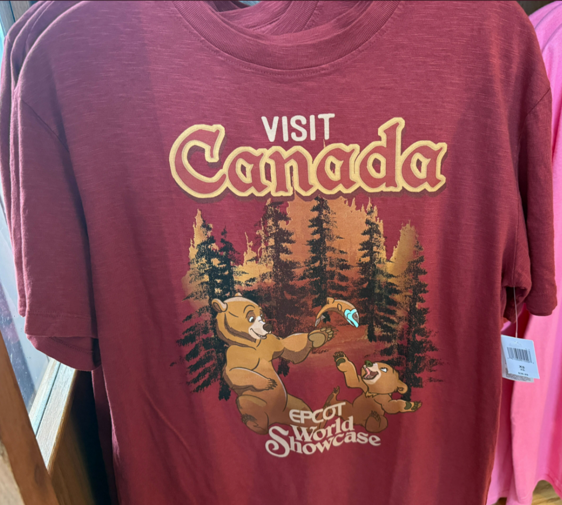Kenai and Koda are visiting the Canada Pavilion on this t-shirt.