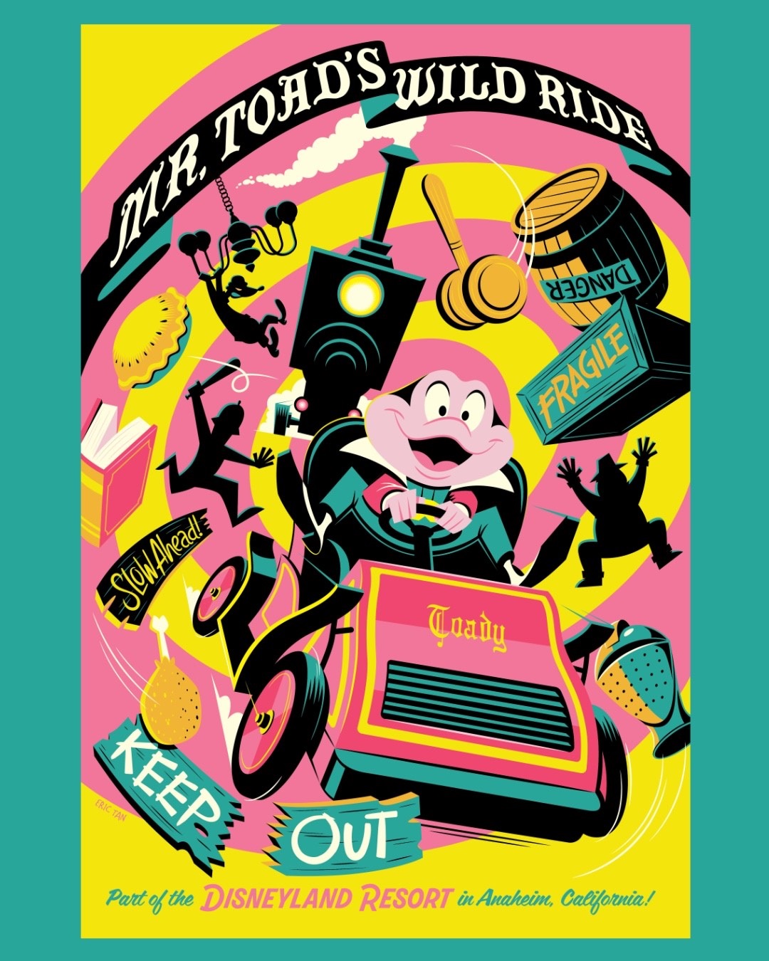 Eric Tan’s hand-screened posters capture 70 years of Disneyland magic.