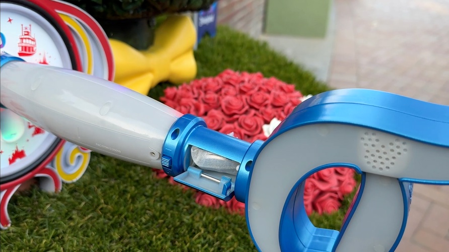 The Key to Disneyland features an on/off slider on the back, and two buttons on the edge of the handle. One allows you to cycle through the colorful lands you’ve collected, while the other turns on the corresponding sound. At launch, it plays Walt Disney’s full dedication to Disneyland speech (“To all who come to this happy place, welcome…").