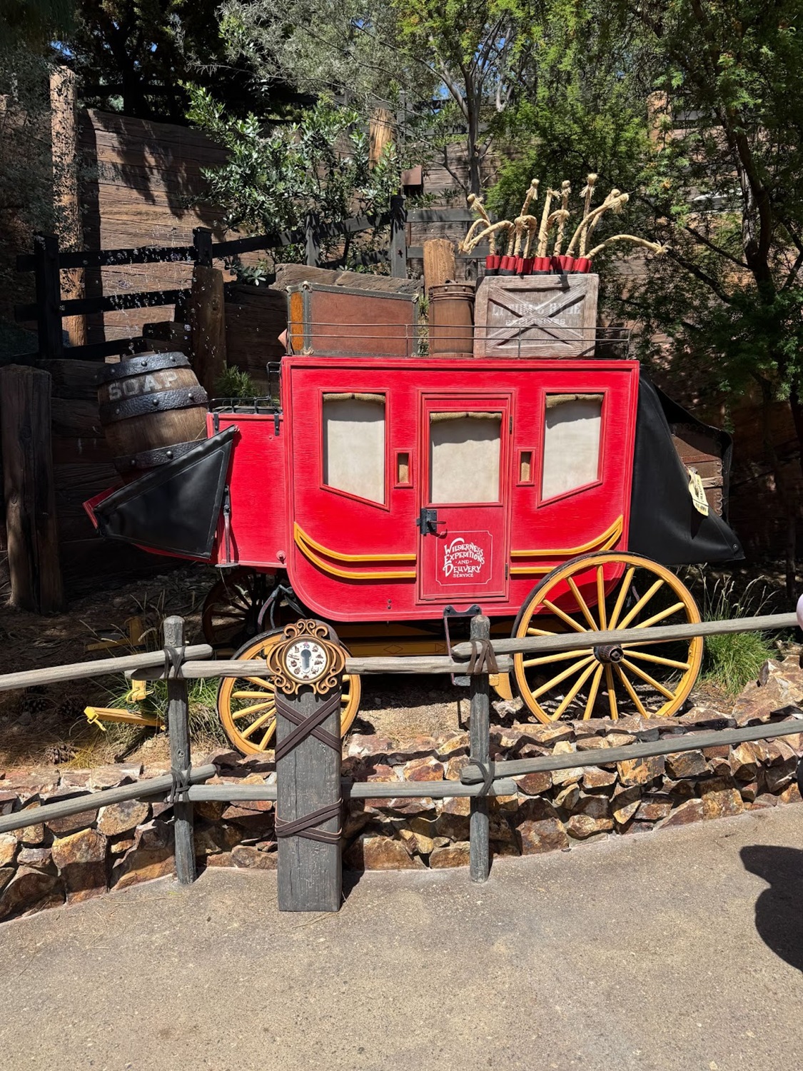 - Frontierland - By the red stagecoach on the Frontierland pathway to/from Galaxy’s Edge.