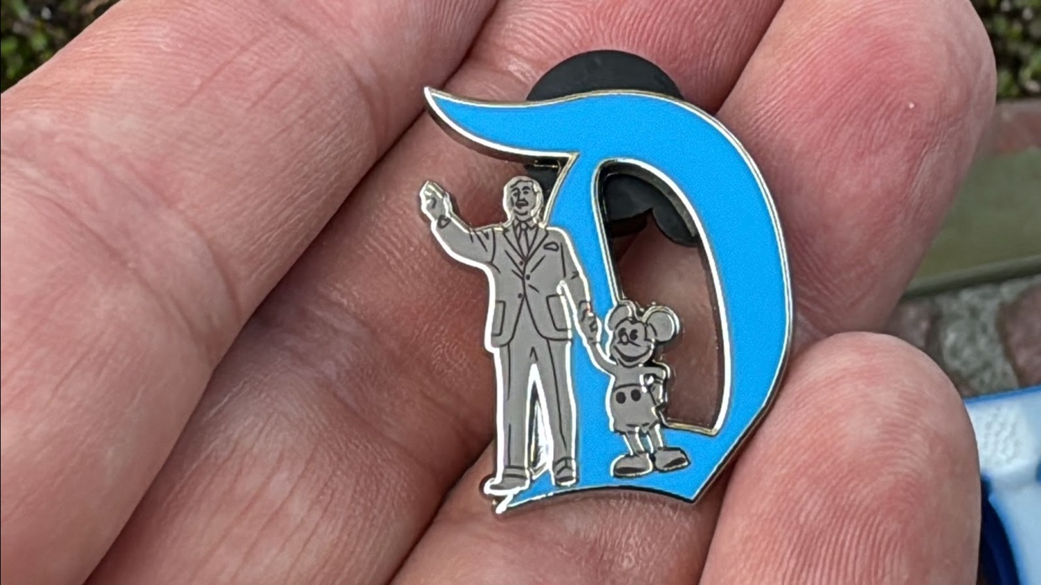 All of the pins have the Disneyland “D" (which is also the shape of the key’s handle), plus one of the icons you collected. We got Main Street’s icon, the Partners Statue.