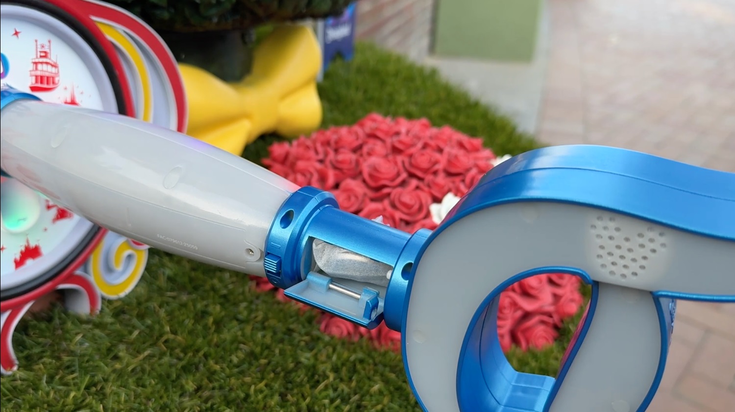 The Key to Disneyland features an on/off slider on the back, and two buttons on the edge of the handle. One allows you to cycle through the colorful lands you’ve collected, while the other turns on the corresponding sound. At launch, it plays Walt Disney’s full dedication to Disneyland speech (“To all who come to this happy place, welcome…").