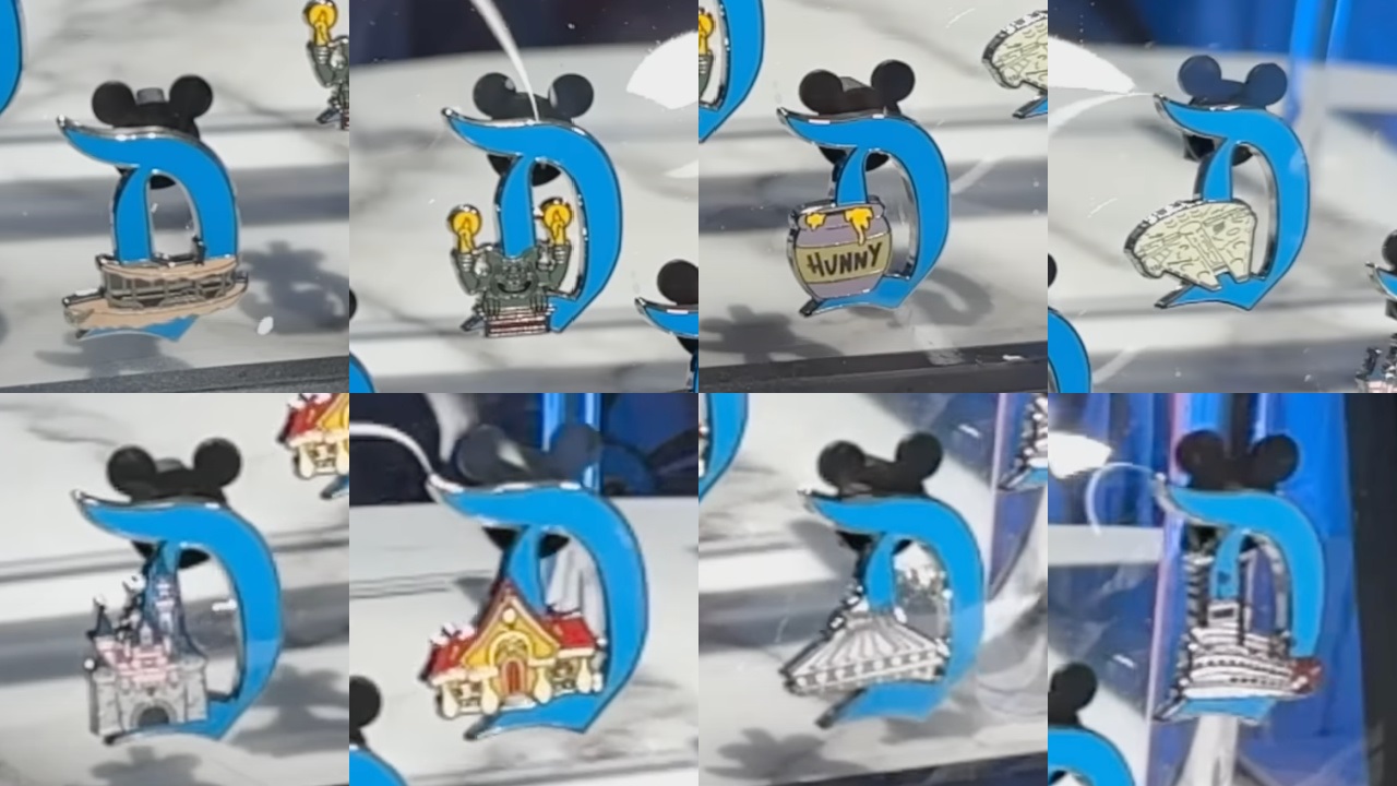 Other pin options include a Jungle Cruise boat, Haunted Mansion candelabra, Winnie the Pooh honey pot, the Millennium Falcon, Sleeping Beauty Castle, Mickey Mouse’s house, Space Mountain, or the Mark Twain Riverboat.