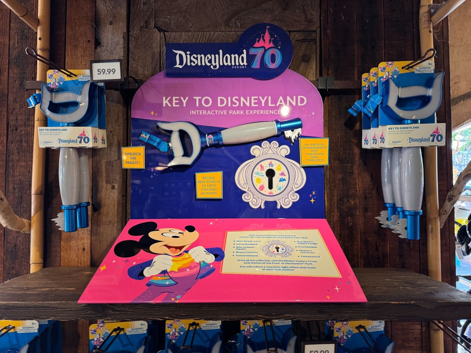 The Key to Disneyland is sold at multiple locations around Disneyland, particularly in shops adjacent to locks, such as the Adventureland Bazaar. See the Key to Disneyland in action in our video below.