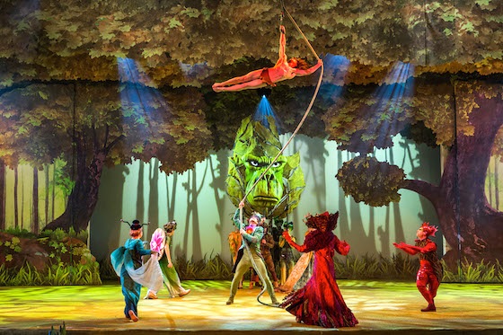 Tarzan came on stage with a big roar and rope swing in, which would come in handy when he then climbed up the rope. While one of the singers sang “Son of Man," Tarzan did some Cirque de Soleil style tricks on the vine and it seemed like he was going to get pretty dizzy. With one’s head on a swivel like that, it was kind of a shock to see this giant gorilla head come on stage to represent his family.