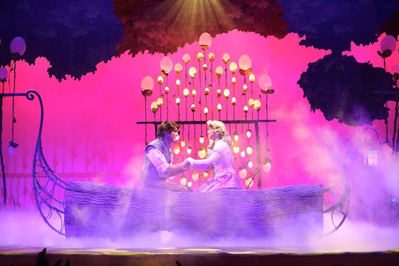 Not to be outdone, Rapunzel was next on stage and got to sing herself with a rendition of the reprise of “When Will My Life Begin." After setting the tone, one could see Flynn Rider in the shadows before he emerged to sing a very French-accented duet with Rapunzel while on a cute little log. Unlike many of the other French shows, the Forest of Enchantment stuck to English exclusively throughout.
