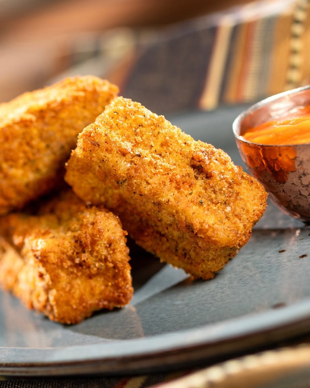 - Curry-spiced Fried Cheese with mango-curry ketchup