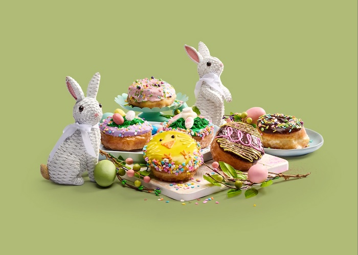 - Easter Donuts: Various flavors decorated with a chick, Easter egg, a rabbit jumping into a burrow, odes to Spring, and “Easter grass" with malted milk ball “Easter eggs"