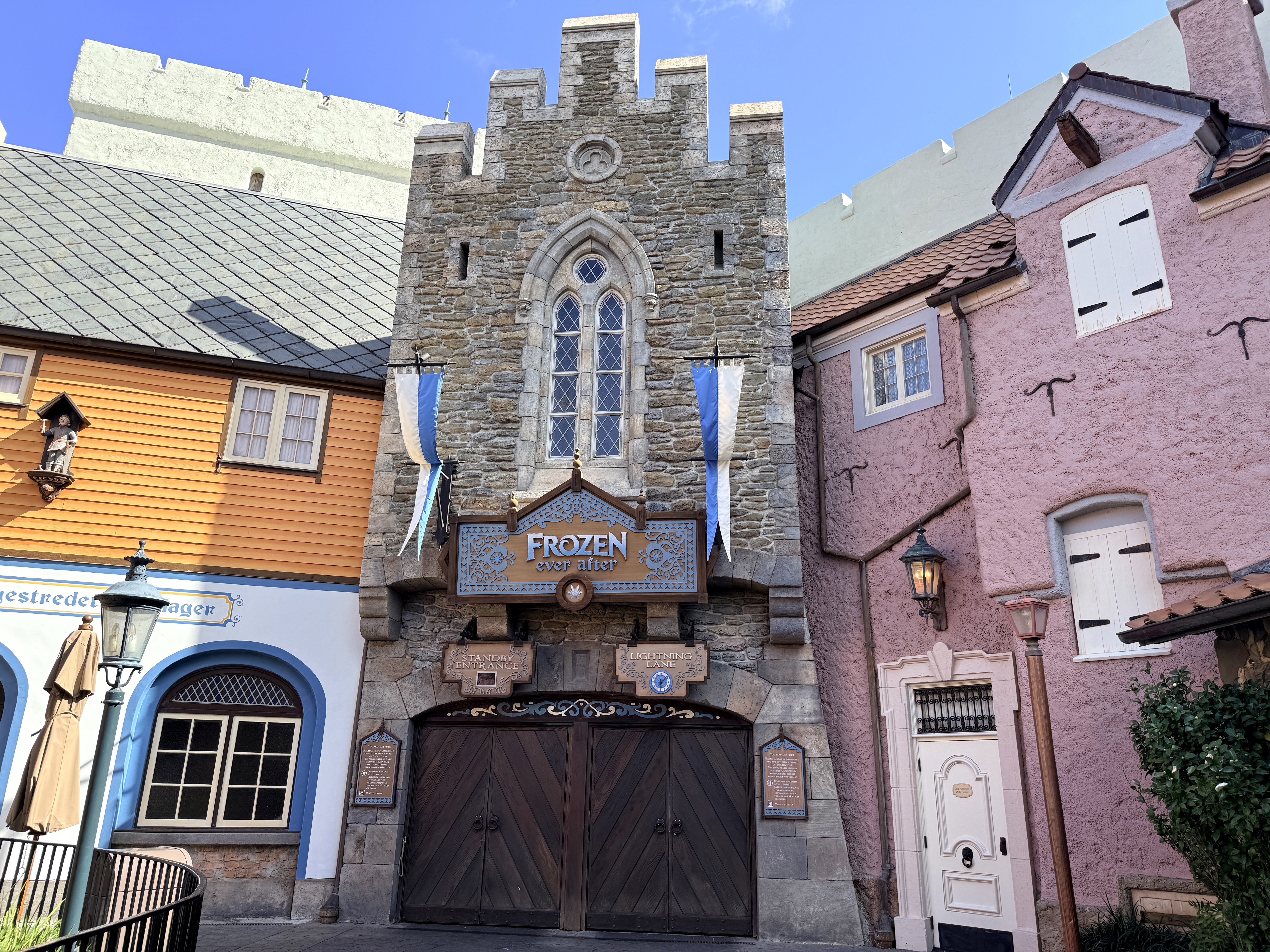The new Audio-Animatronic figures akin to those in the Hong Kong Disneyland version of Frozen Ever After will be coming to EPCOT in February 2026. To prepare for the change, Frozen Ever After is now closed as the new magic is installed. No walls are up, but the doors to the attraction are closed.