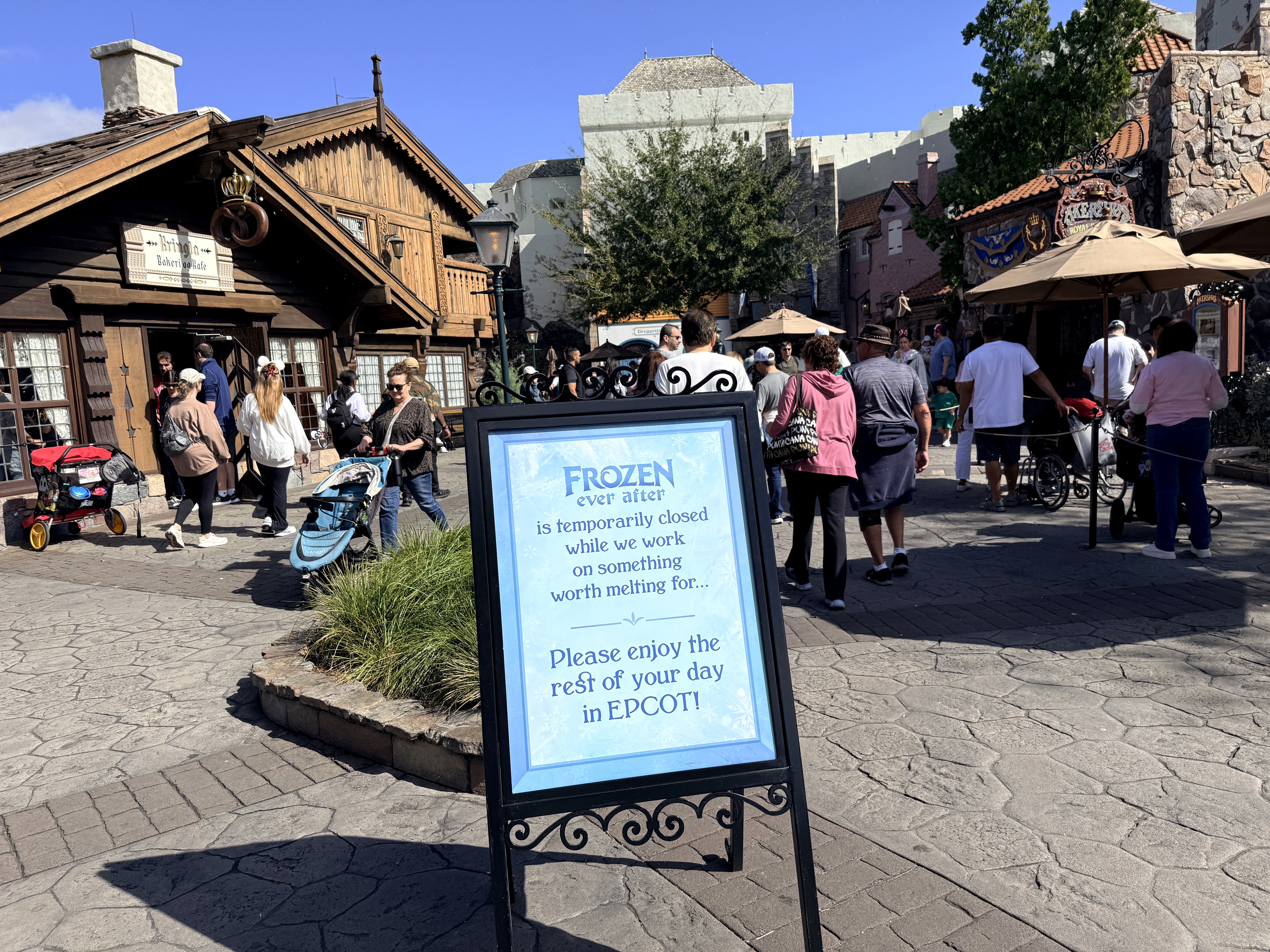 Before you get that far though, you'll come across a sign stating that "Frozen Ever After is temporarily closed while we work on something worth melting for..."