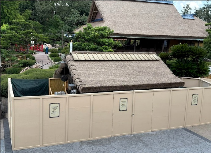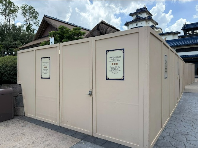 Change is underway in the Japan Pavilion at Epcot, as construction walls have surrounded the former Garden House outdoor bar, hinting at a brand-new experience for guests exploring World Showcase.