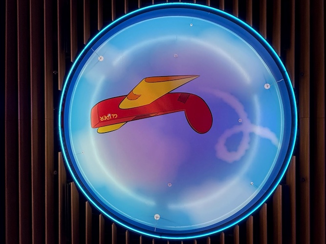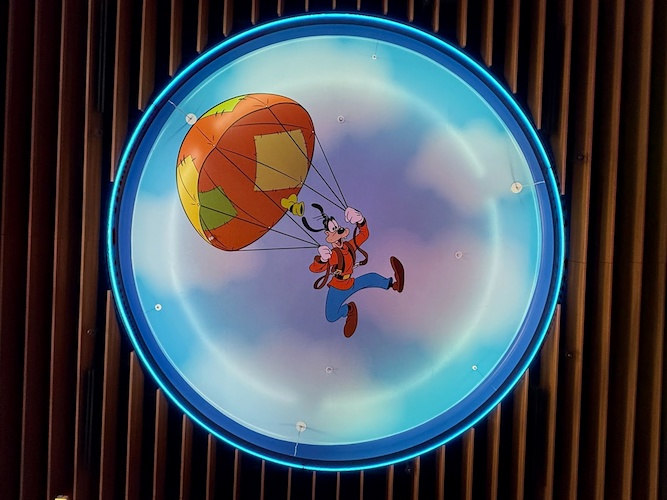 Look up, and you’ll see Goofy escaping his plane via parachute – very reminiscent of Goofy’s Sky School at Disney California Adventure.